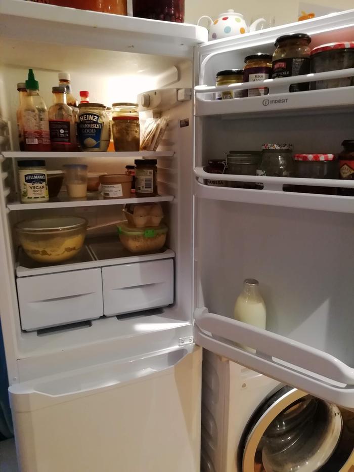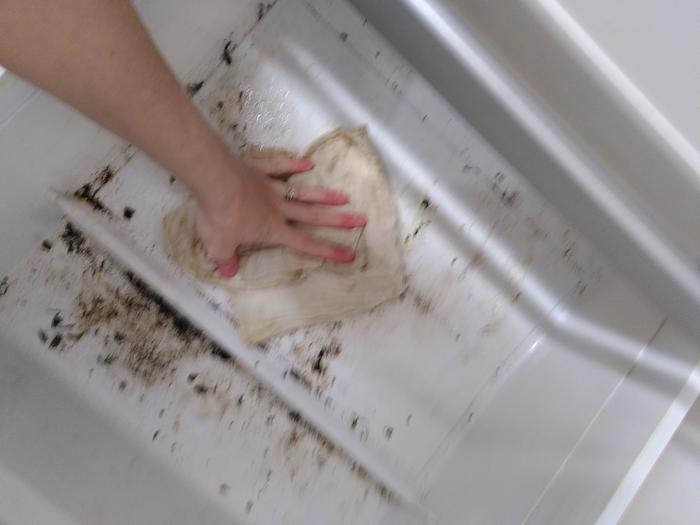 compost). I mostly used a dish brush and a biodegradable vegan dish block to wash the shelves which I can remove and wash in the sink. I used diluted citric acid spray and a damp cloth as well as a small brush for cleaning corners.