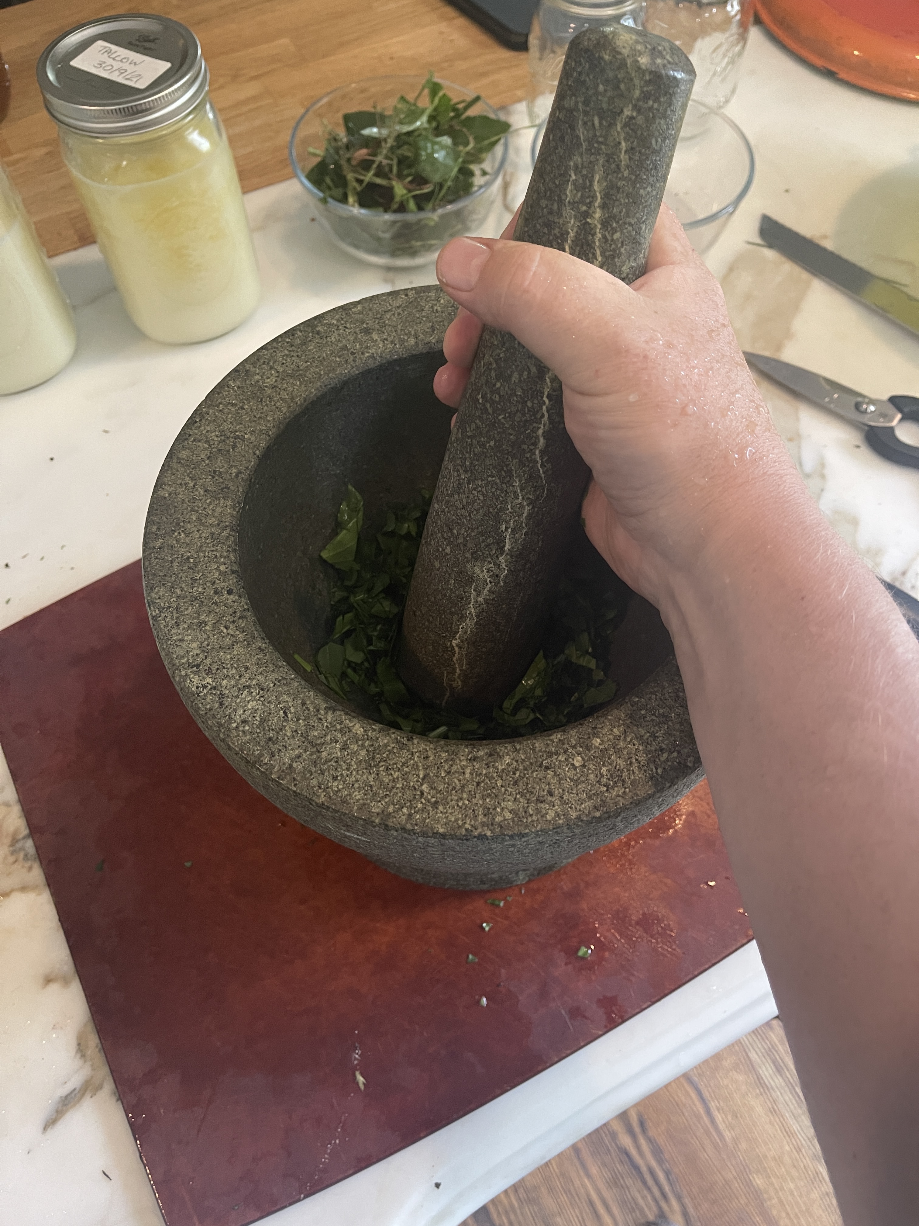 to make an herbal-infused oil, you need to soak dried herbs for several weeks (or heat/soak fresh herbs for several hours) so the process described would not qualify for the infused oil BBs.