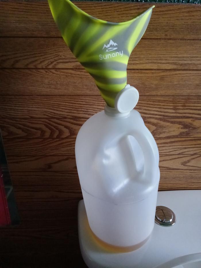 Peed in a clear cup, and then went to dilute pee with rainwater in full watering can.