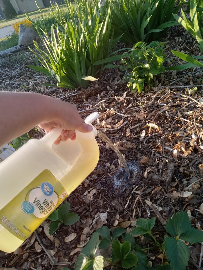 Feeding the strawberries and blackberries in a mulch bed. They got trampled this winter and need the extra boost!