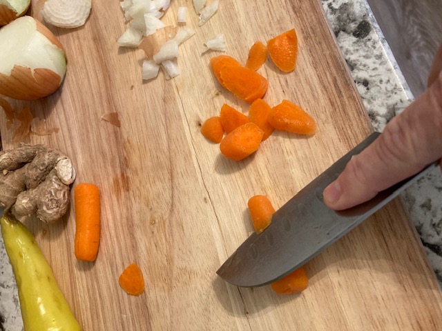 - post a picture of you preparing some of the ingredients (chopping herbs or carrots, for example)