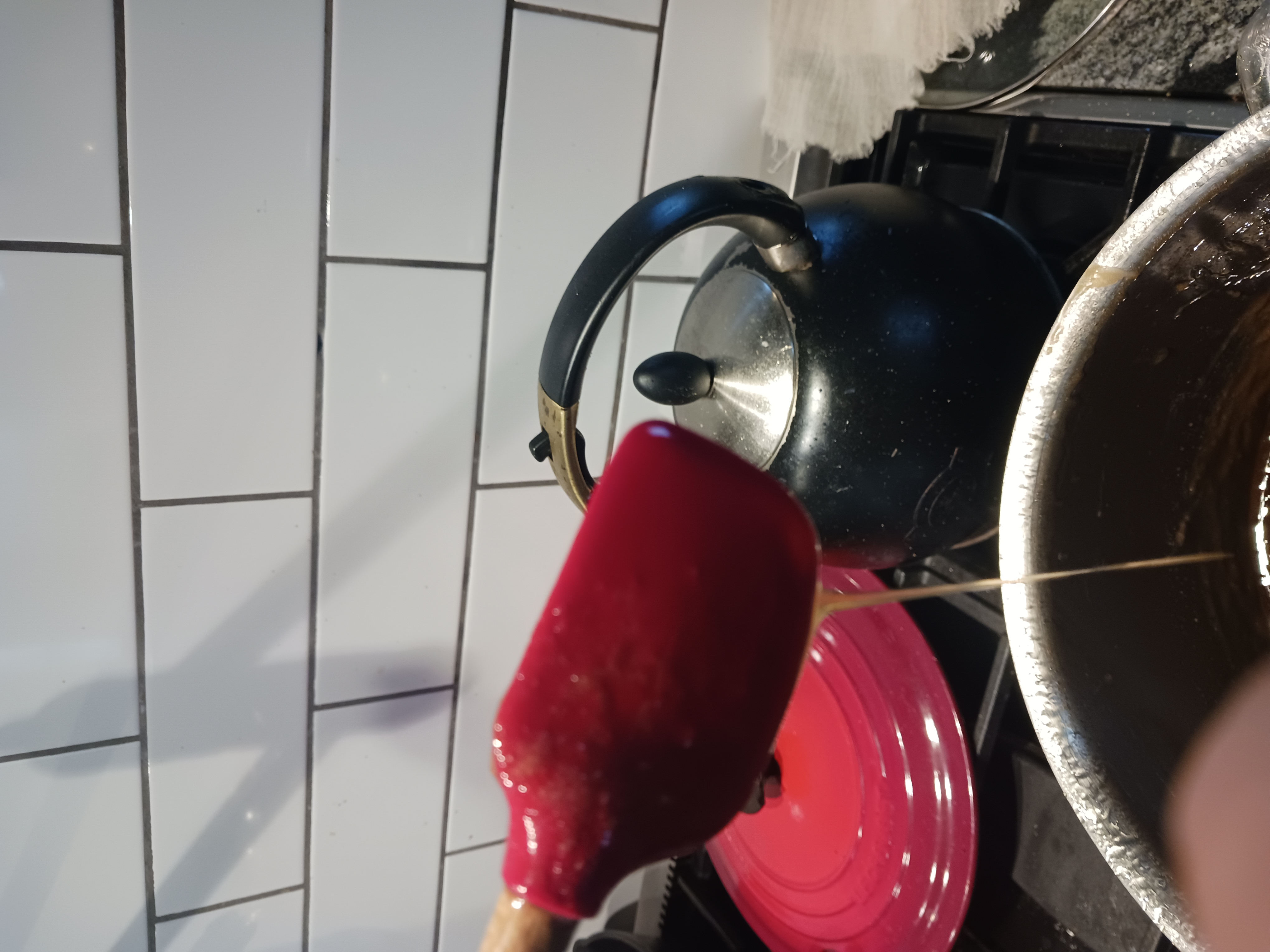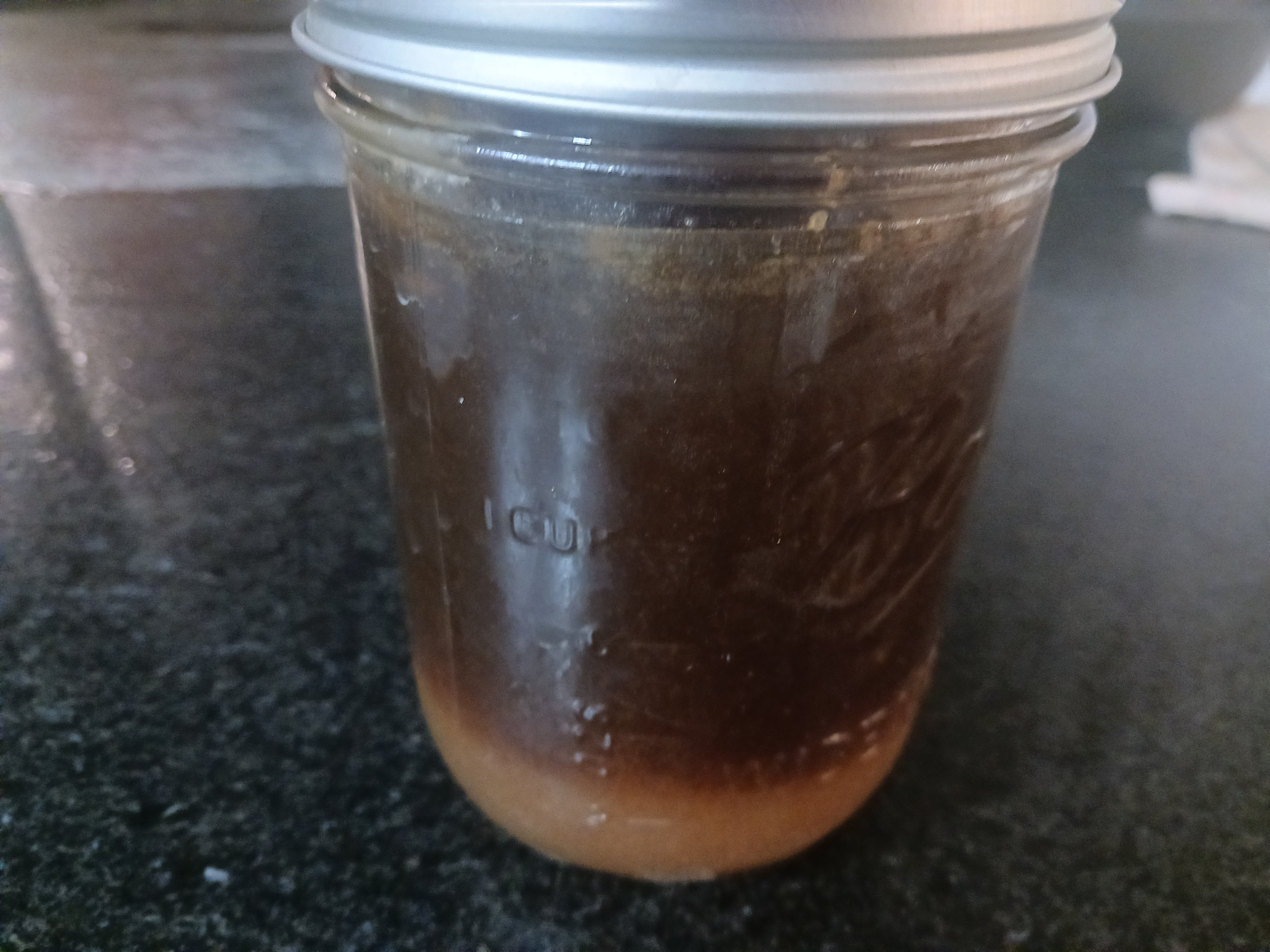 After a cleaner transfer into the smallest pot I own, I poured the sticky yumminess into a pint jar.