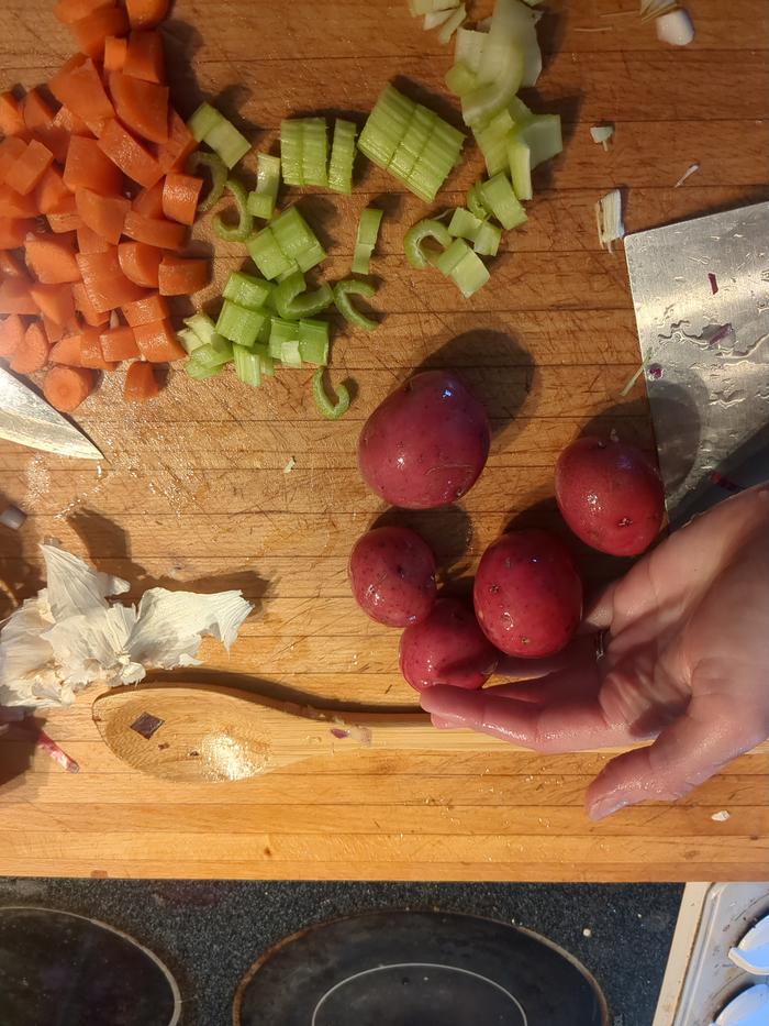 - post a picture of you preparing some of the ingredients (chopping herbs or carrots, for example)