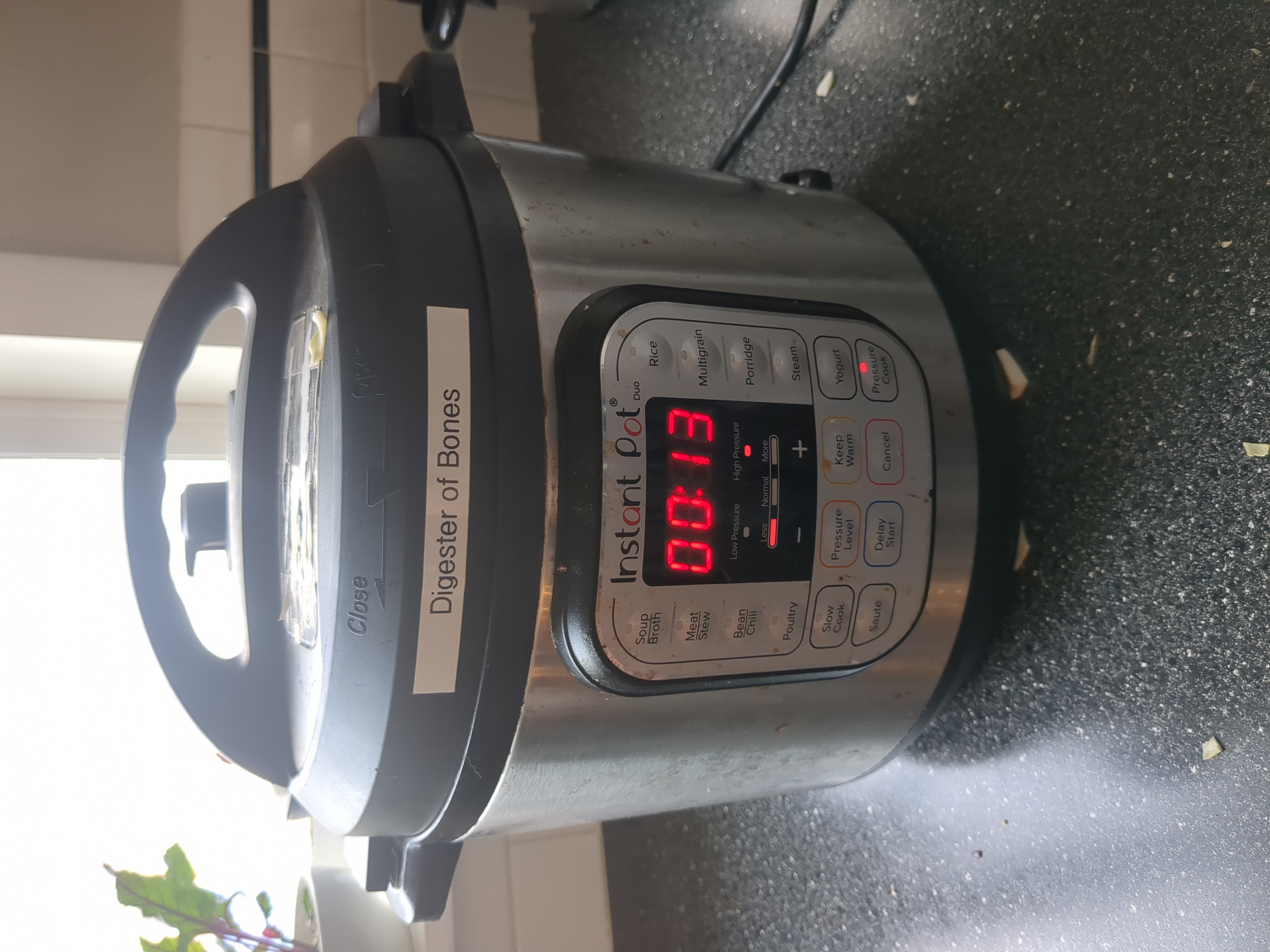 Note: food touching plastic (salt and lentil packaging) and aluminum pot