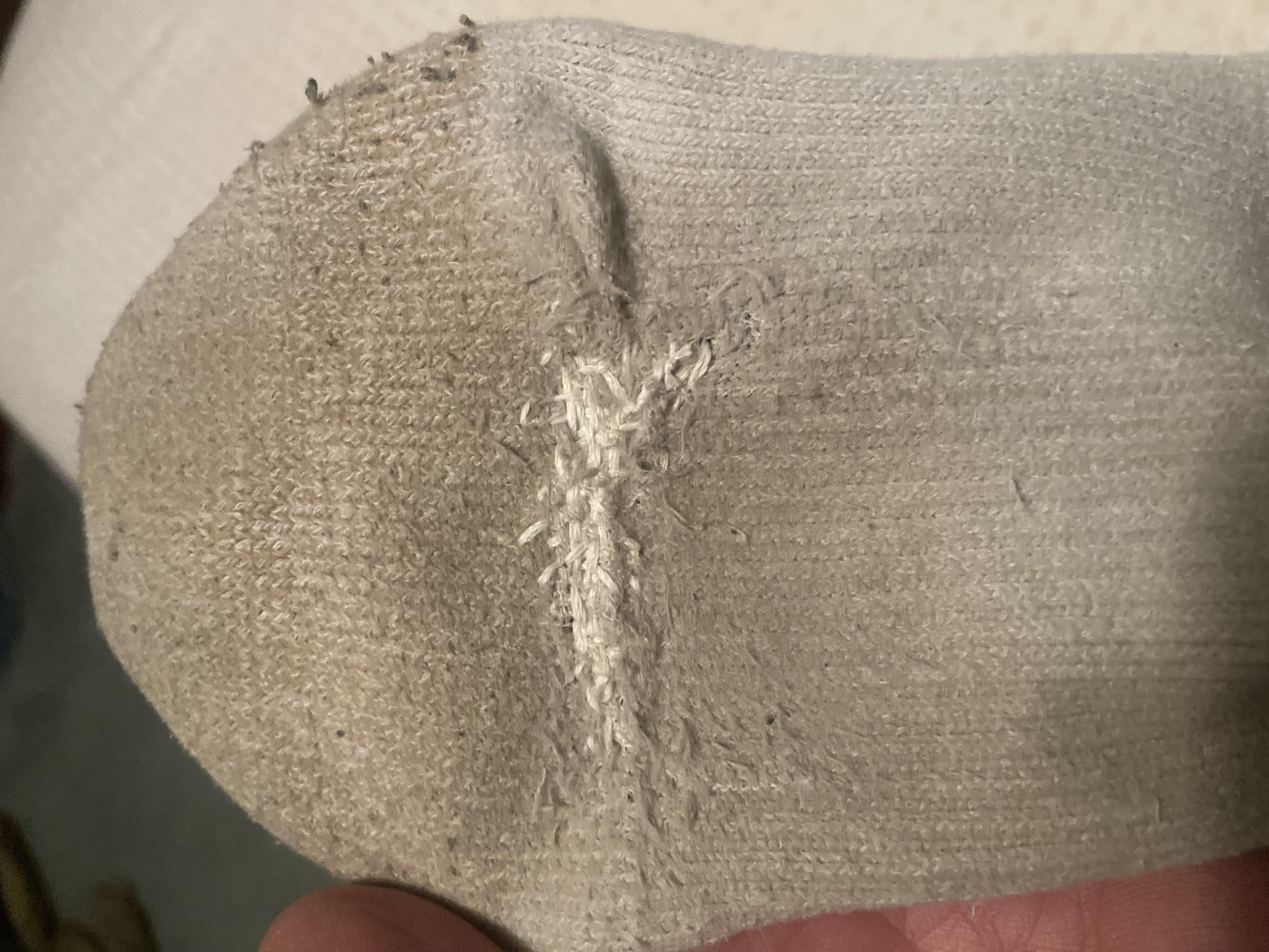 Chris Clinton wrote:Darn it! Sock got a hole. Good to fix while it's small before it inevitably enlarges. Not my first time darning but I couldn't find my mushroom so used a tennis ball. Used 100% wool mending yarn, I buy small vintage lots of it on ebay from time to time. Seems less available new but maybe I don't know the right terms to search for. Kinda wished I'd used some yarn a little thicker while I was doing it but worked out fine.