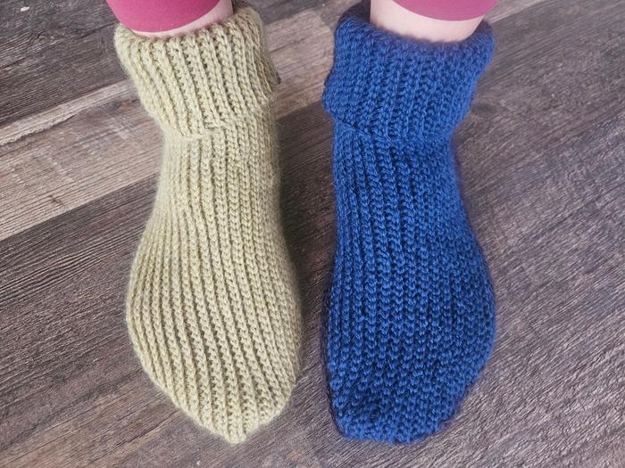 I knitted my socks asymmetrically so the toe area of each sock follows the shape of corresponding foot, so my toes won't poke that hard and the socks should last longer.