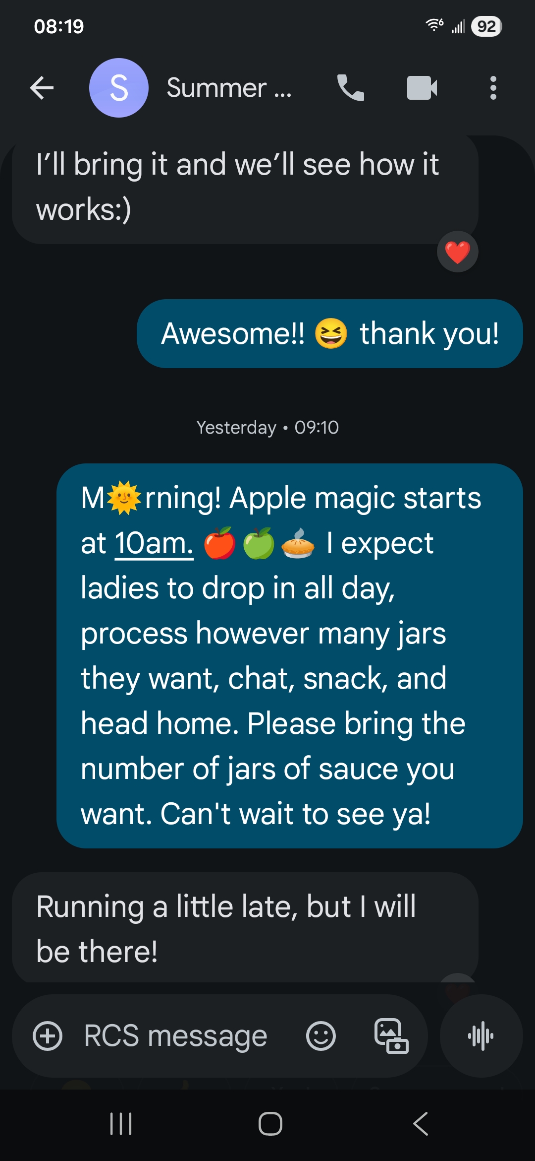 Here is the screenshot with the timestamp, showing our crazy selves still processing apples after 6pm!