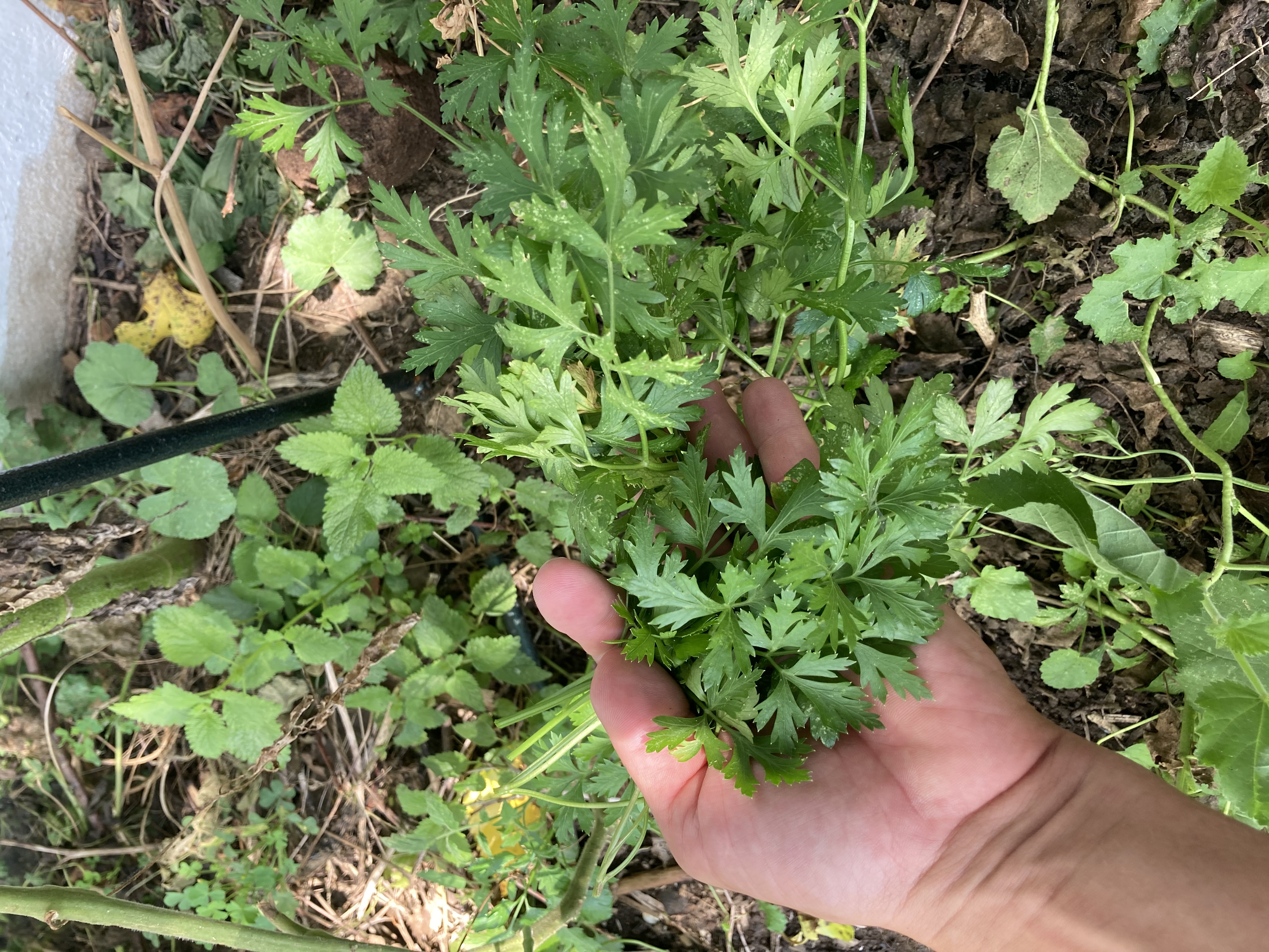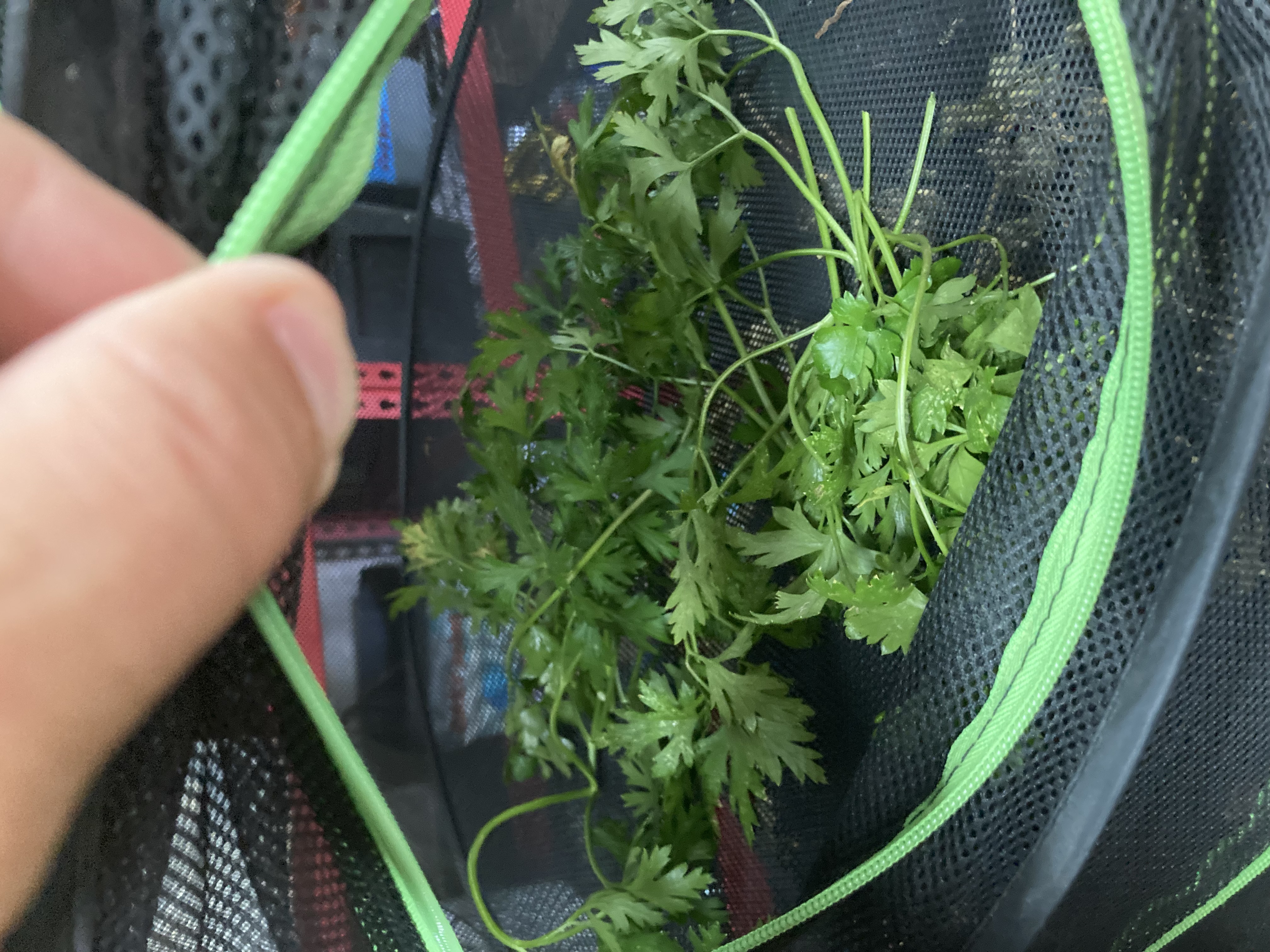 We love parsley and grew it in several places around the garden this spring. ¡Muy delicioso!