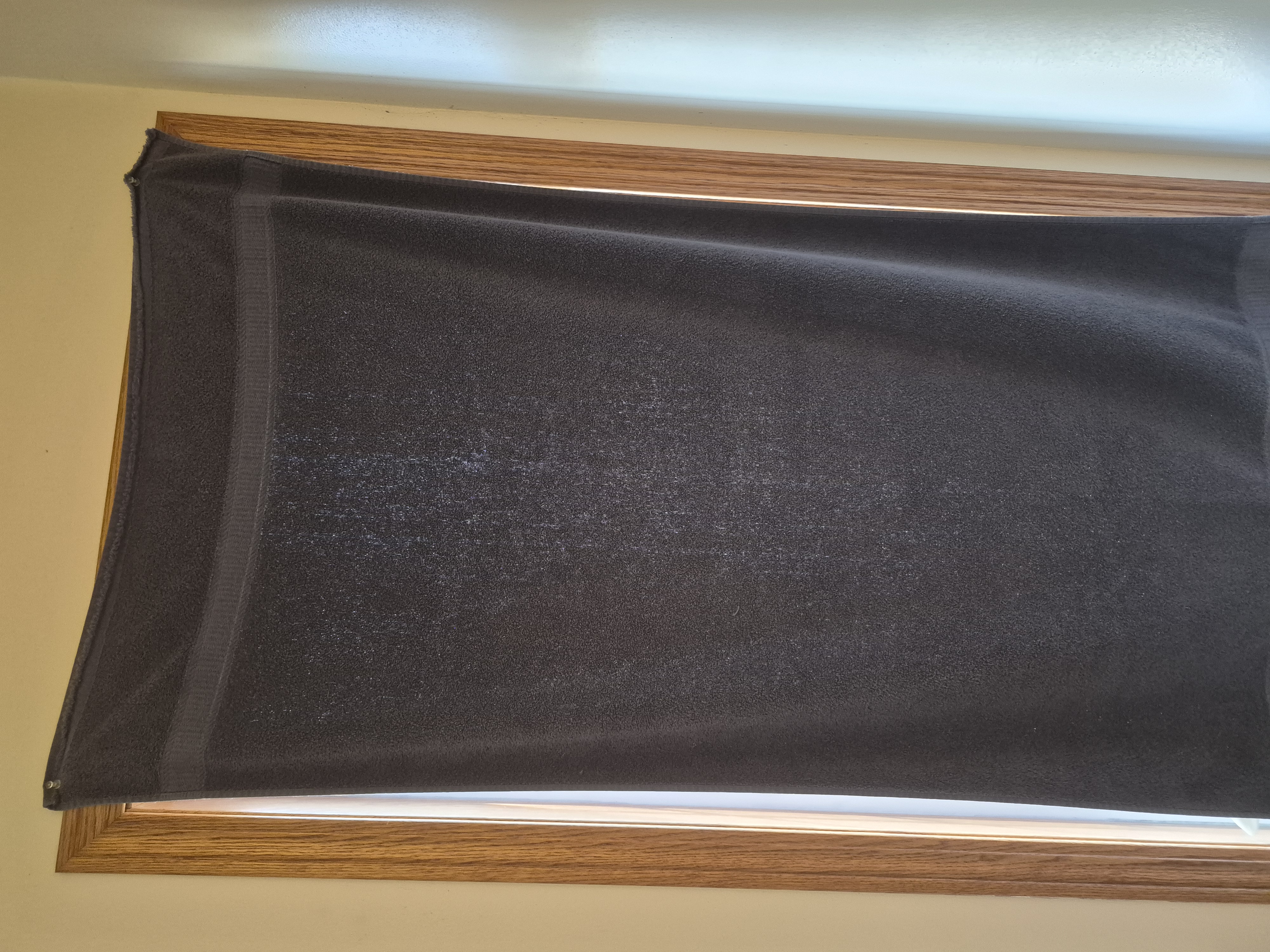 This window used to have 25+ year old blinds that gave out. In the mean time we had tacked a bath towel for wearmth and privacy. Time to fix it propperly!