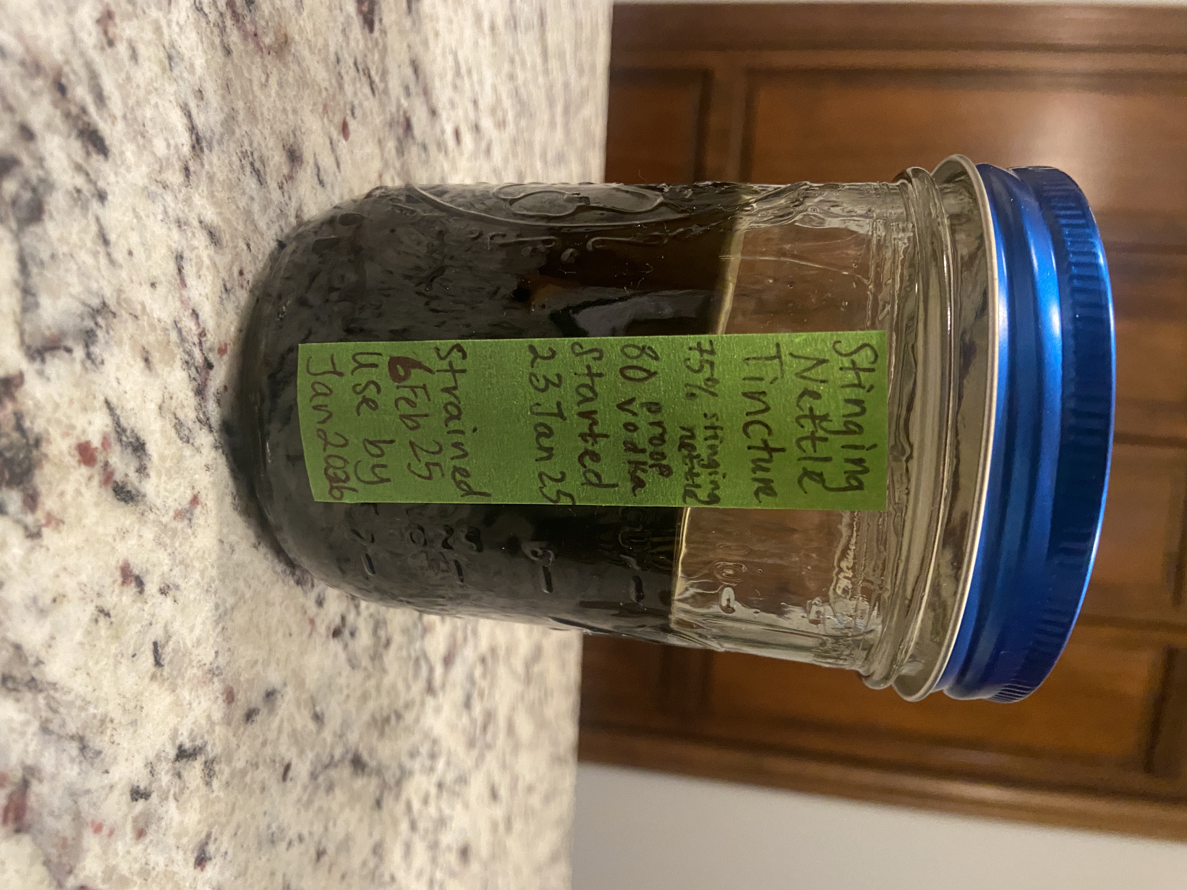 - picture of the finished tincture in its labeled jar.