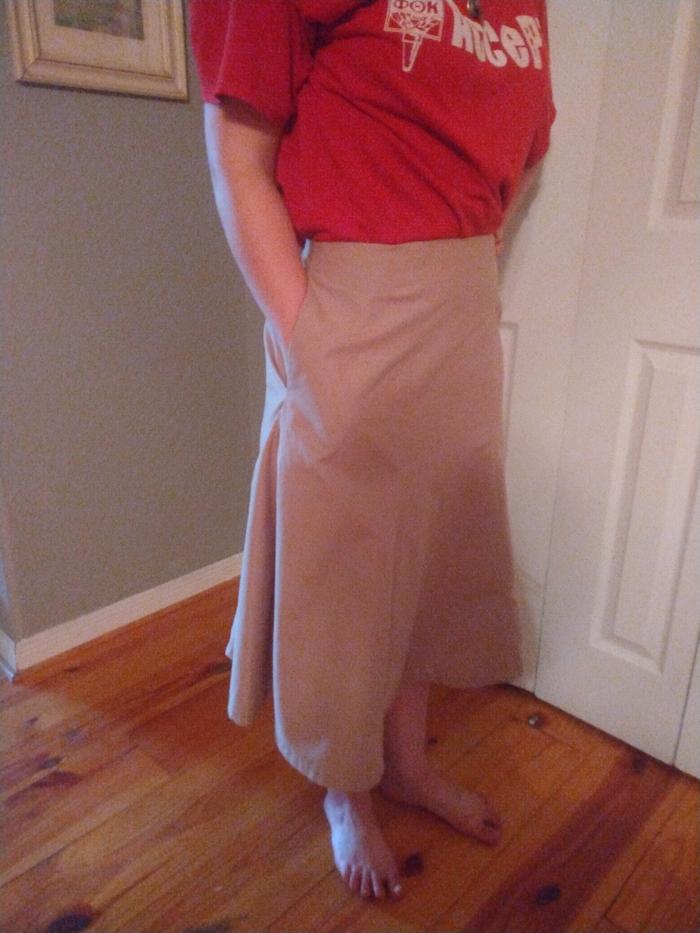- Wearing the finished skirt, showing finished length
