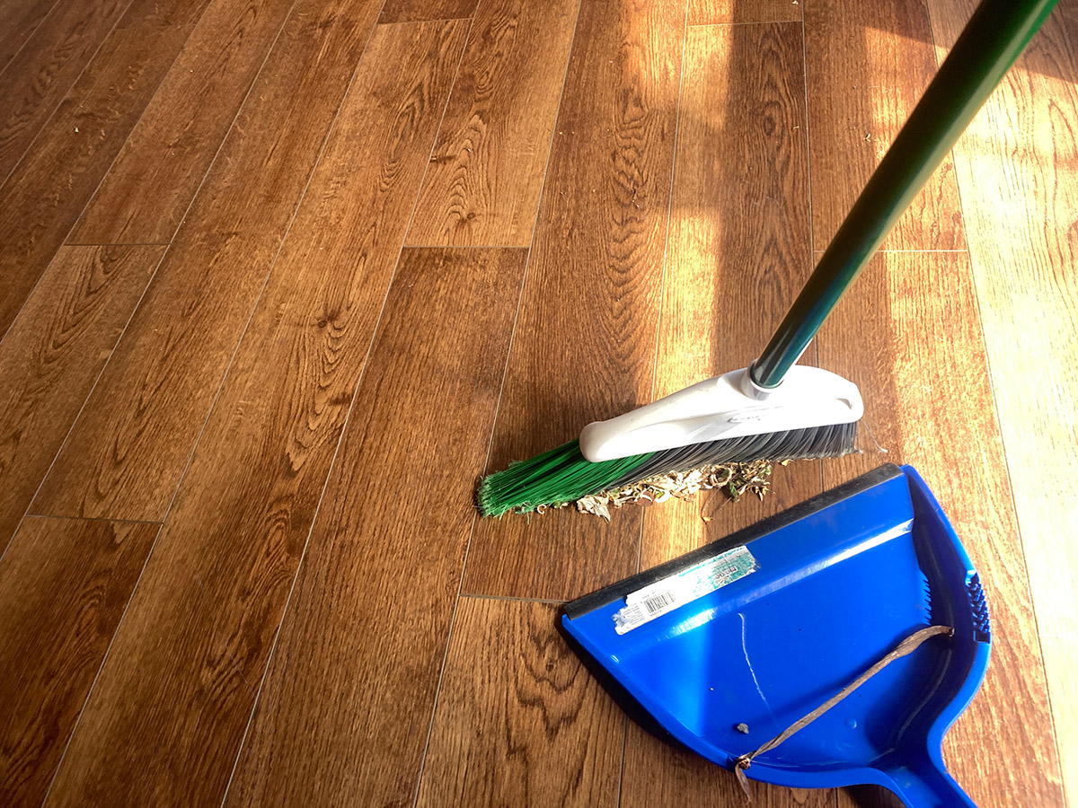 - an action shot of you sweeping the floor