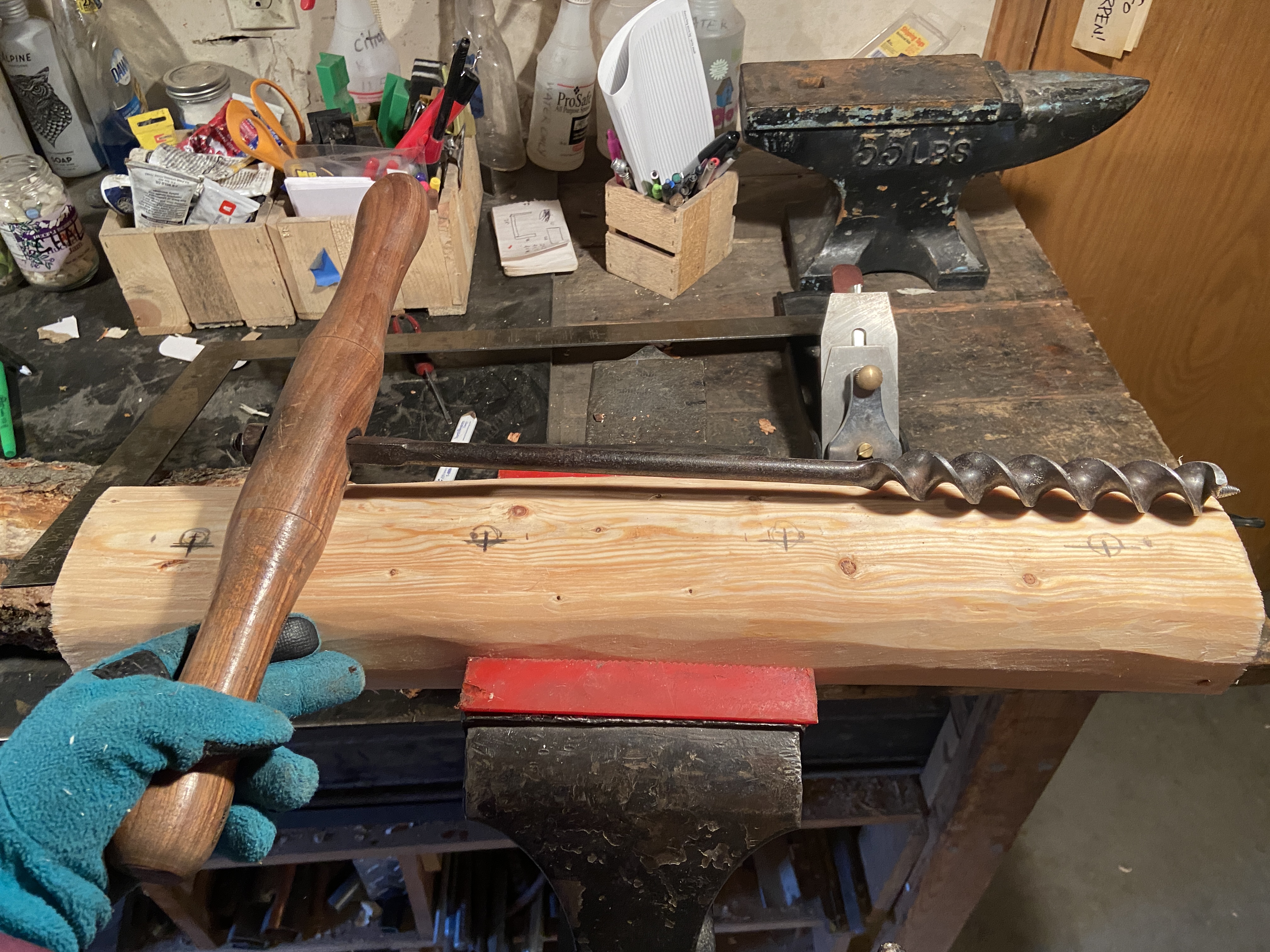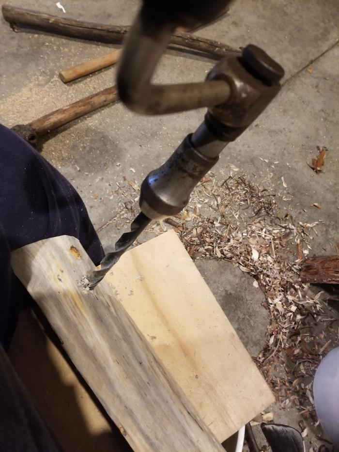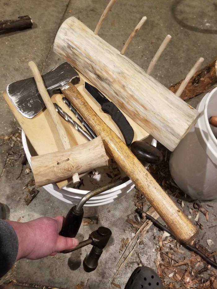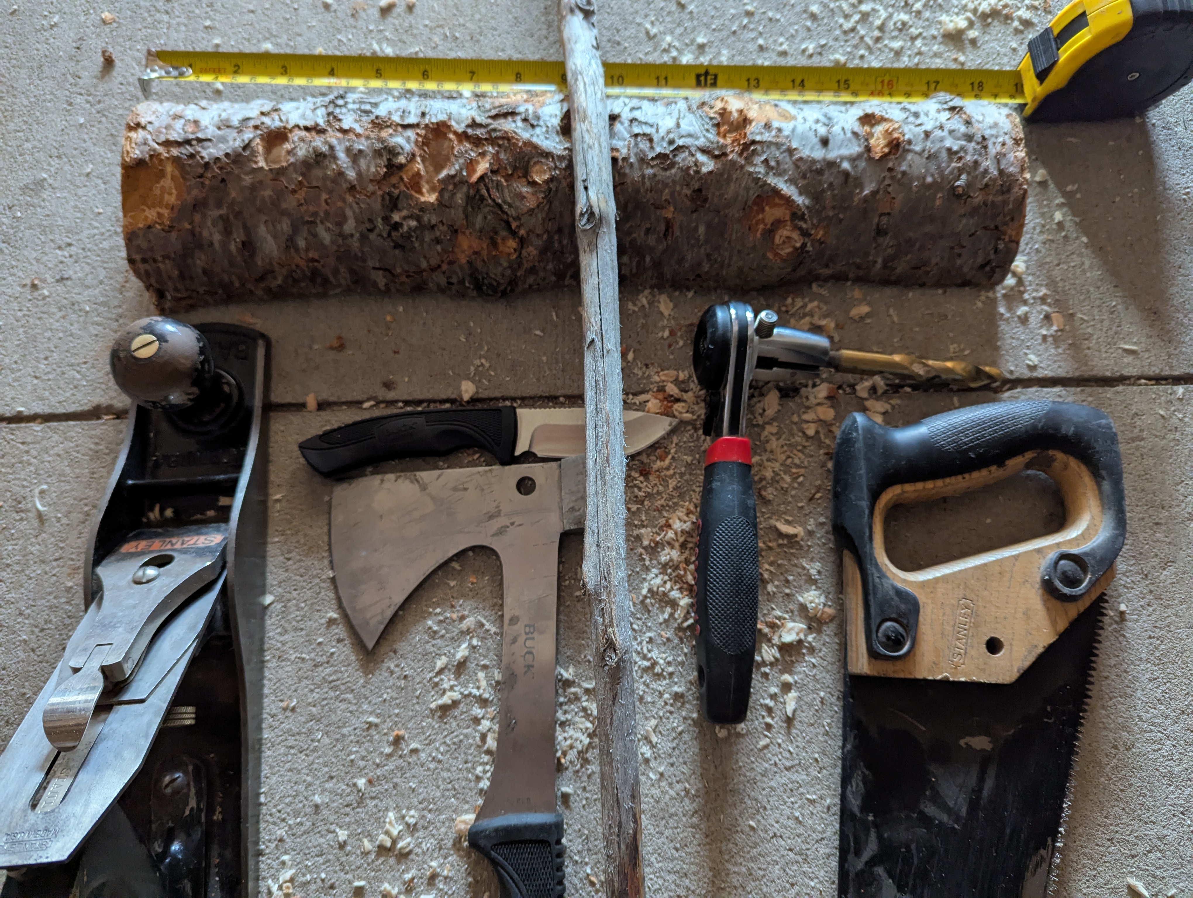 I used a drawknife, shaving horse, an auger, loppers, and a pocket knife.