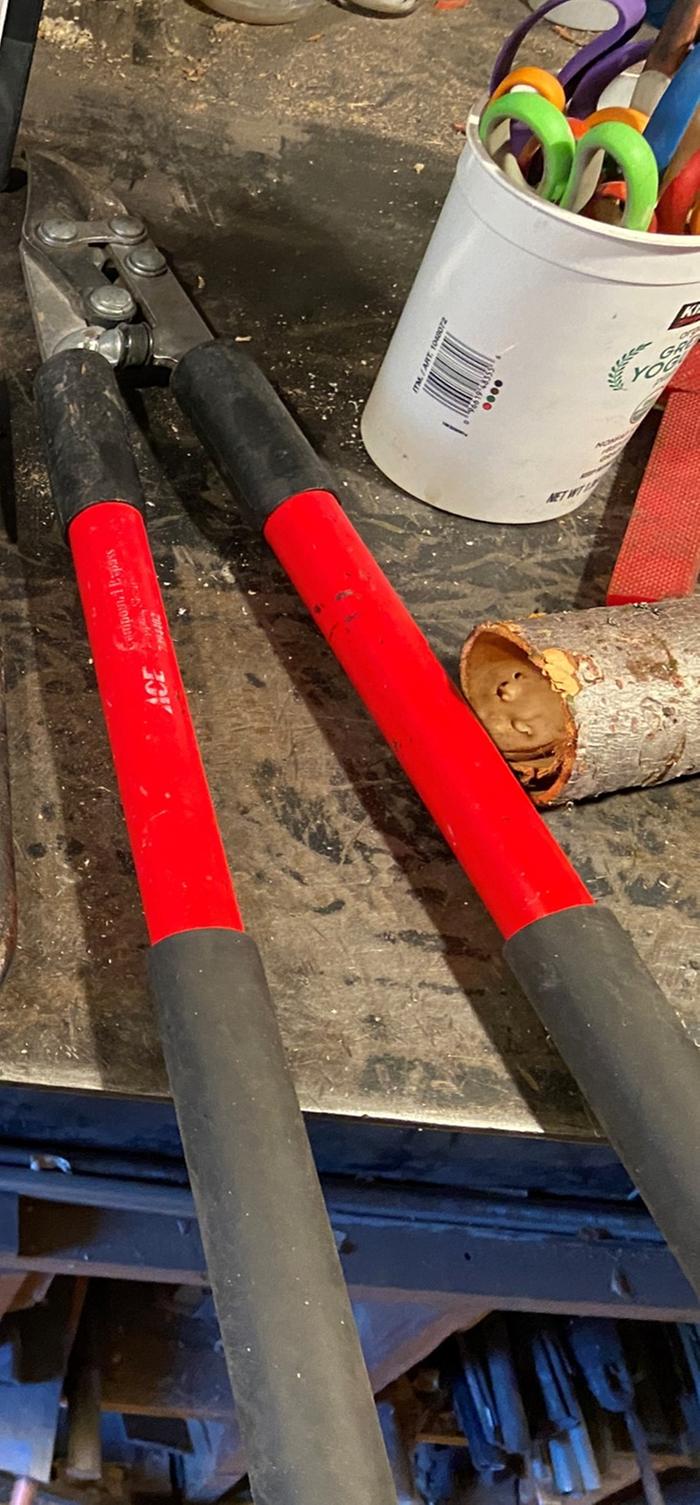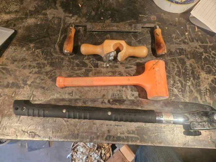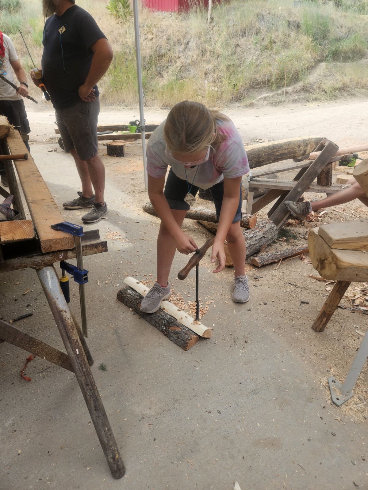 I used a drawknife, shaving horse, an auger, loppers, and a pocket knife.