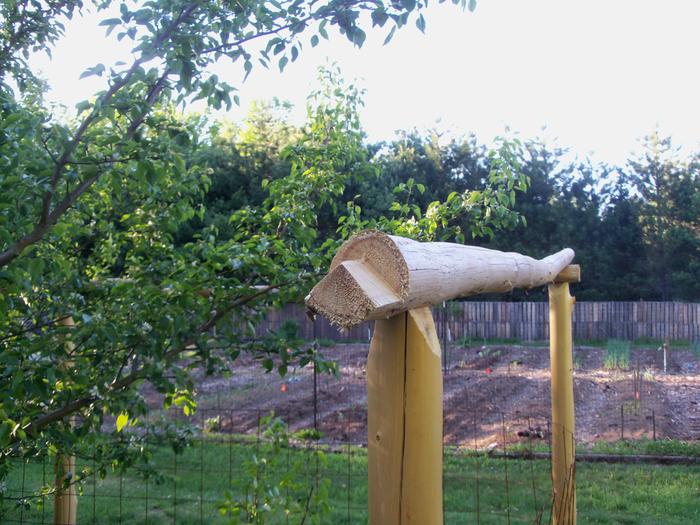As your roundwood construction skills are improving, it's time to make things that are elegant while still being sturdy.  Sometimes the top of a fence can get pushed on by a loaded apple tree.  Or you want a very obvious barrier for the deer to not want to jump over.  Let's make a fence with an upper rail that is designed so that it won't rot and will be elegant!