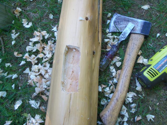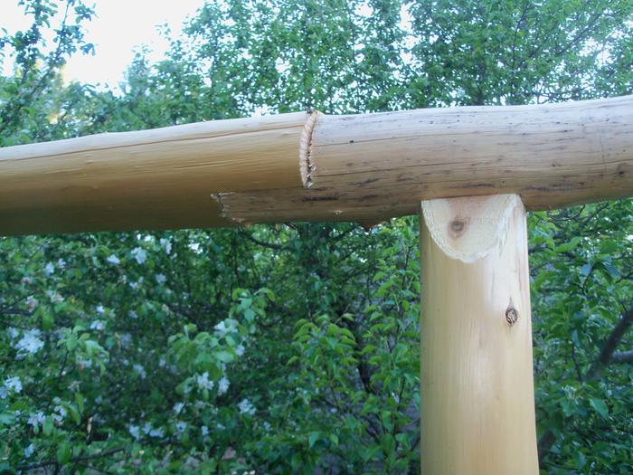 As your roundwood construction skills are improving, it's time to make things that are elegant while still being sturdy. Sometimes the top of a fence can get pushed on by a loaded apple tree. Or you want a very obvious barrier for the deer to not want to jump over. Let's make a fence with an upper rail that is designed so that it won't rot and will be elegant!
