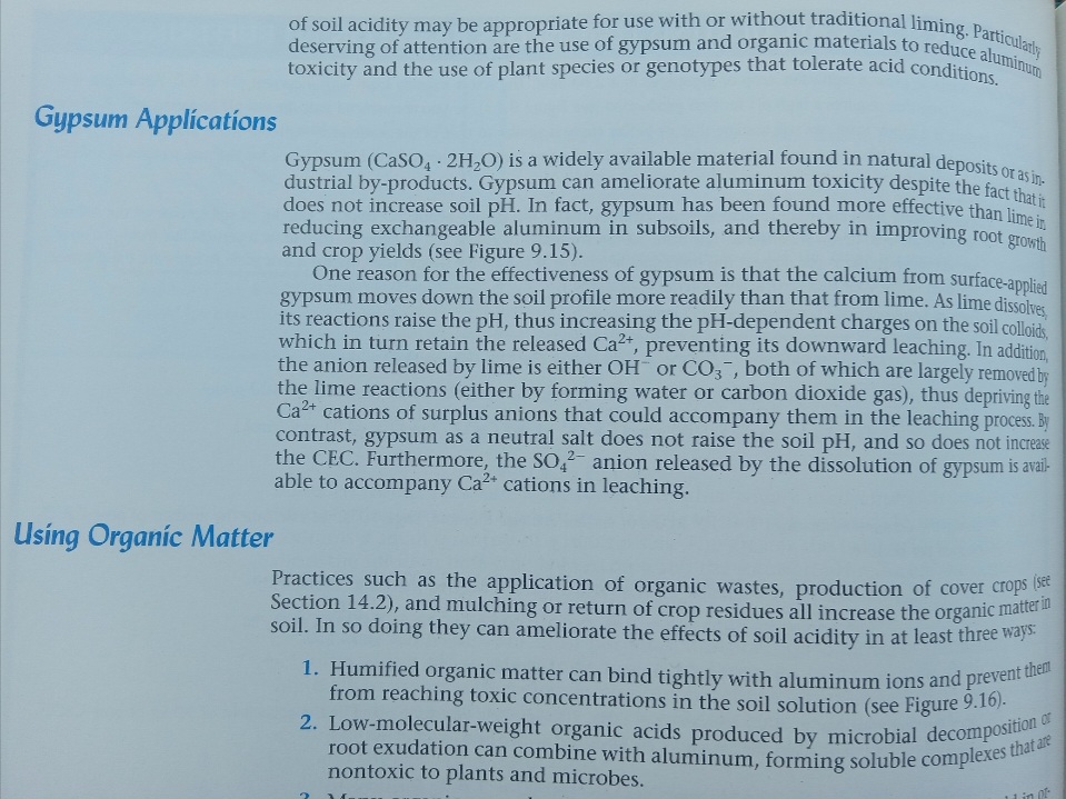 Gypsum is also known as calcium sulfate. Gypsum has multiple uses in the realm of agriculture including being a source of calcium and sulfur for plants. When gypsum is added to soils that contain high levels of salt, it helps reduce sodium and magnesium levels. Gypsum is also useful for acidic soils that have aluminum or boron at toxic levels. Gypsum otherwise helps create more favorable soil structure aggregate as well as improved water retention levels.