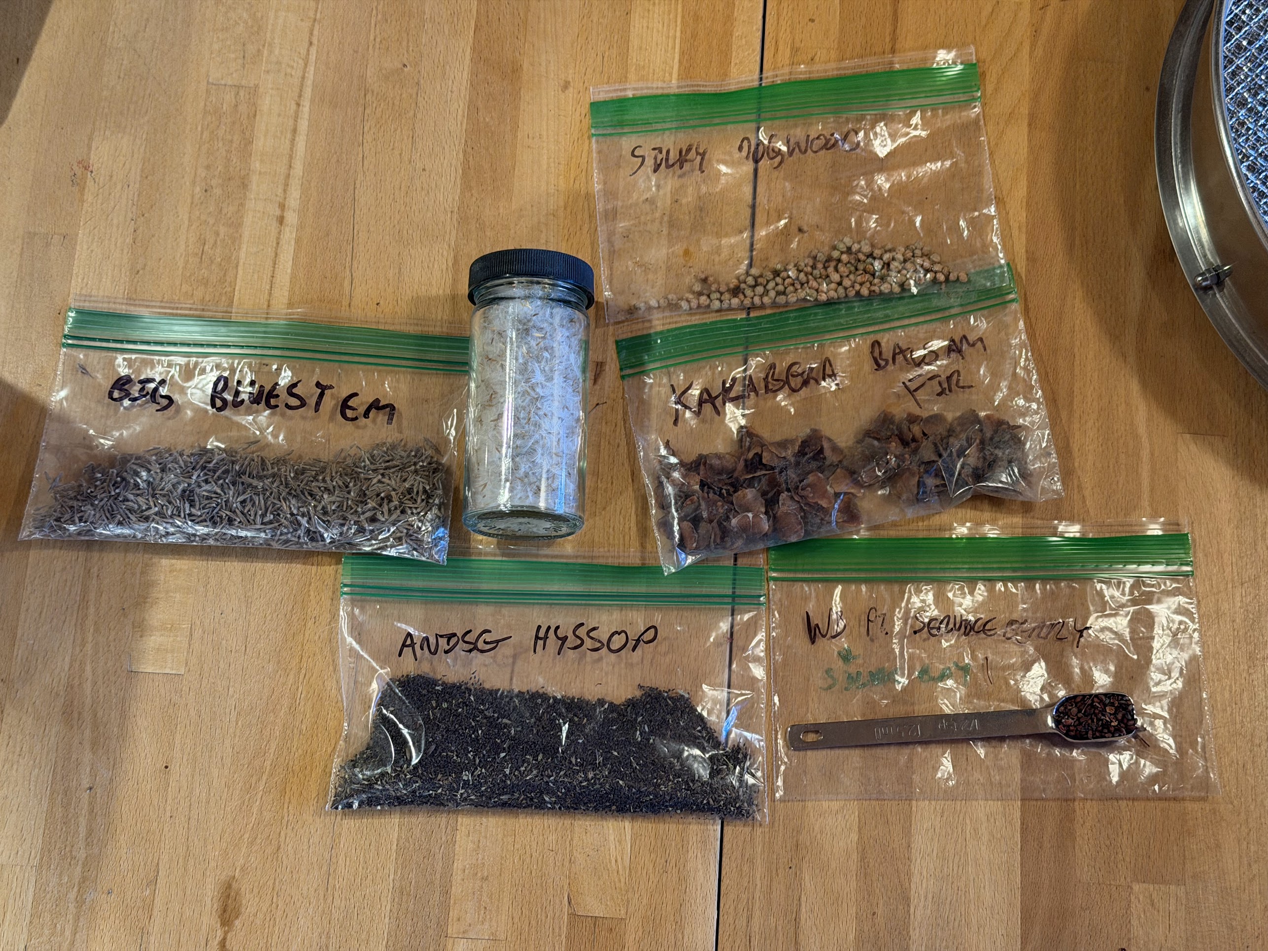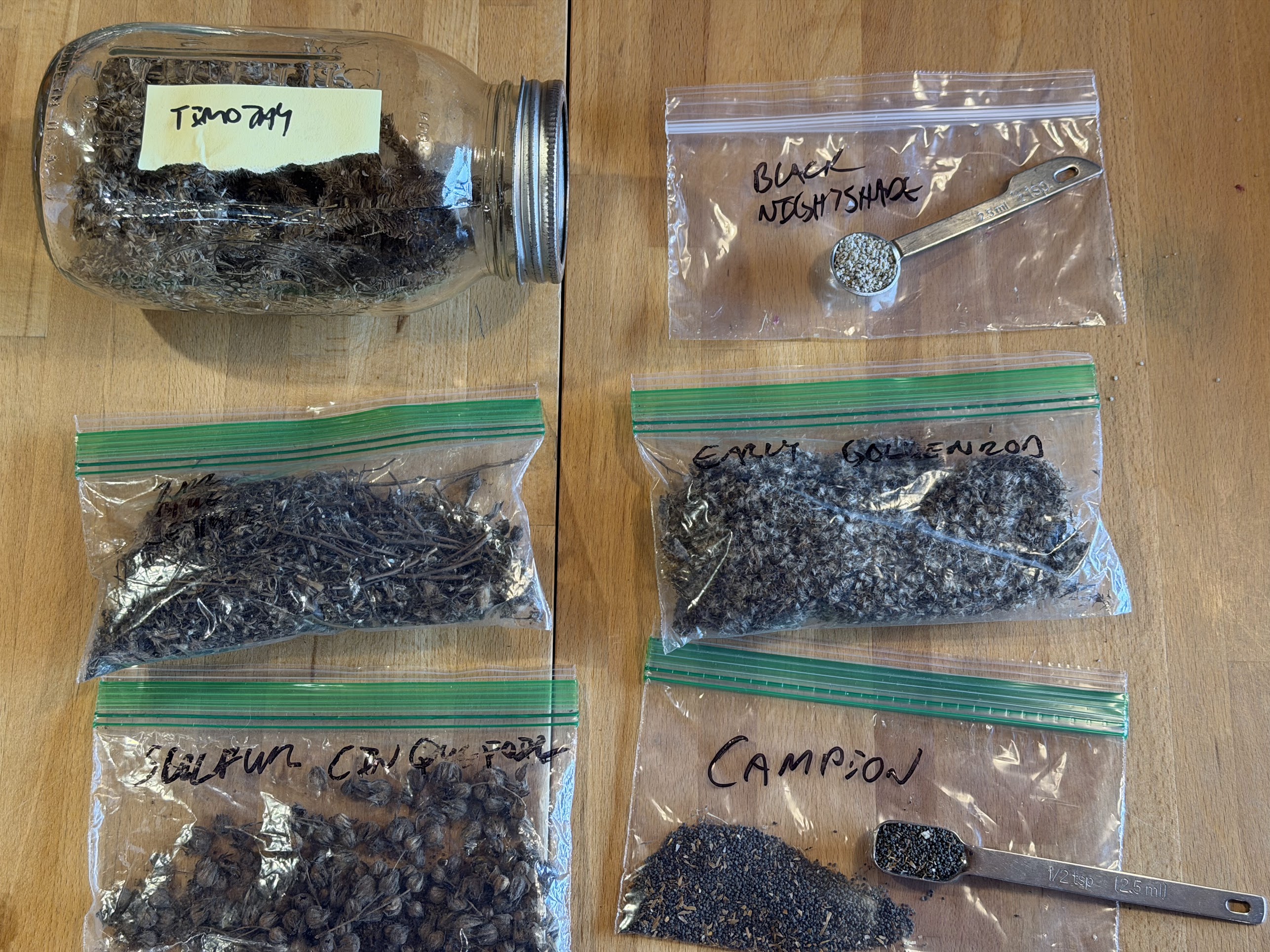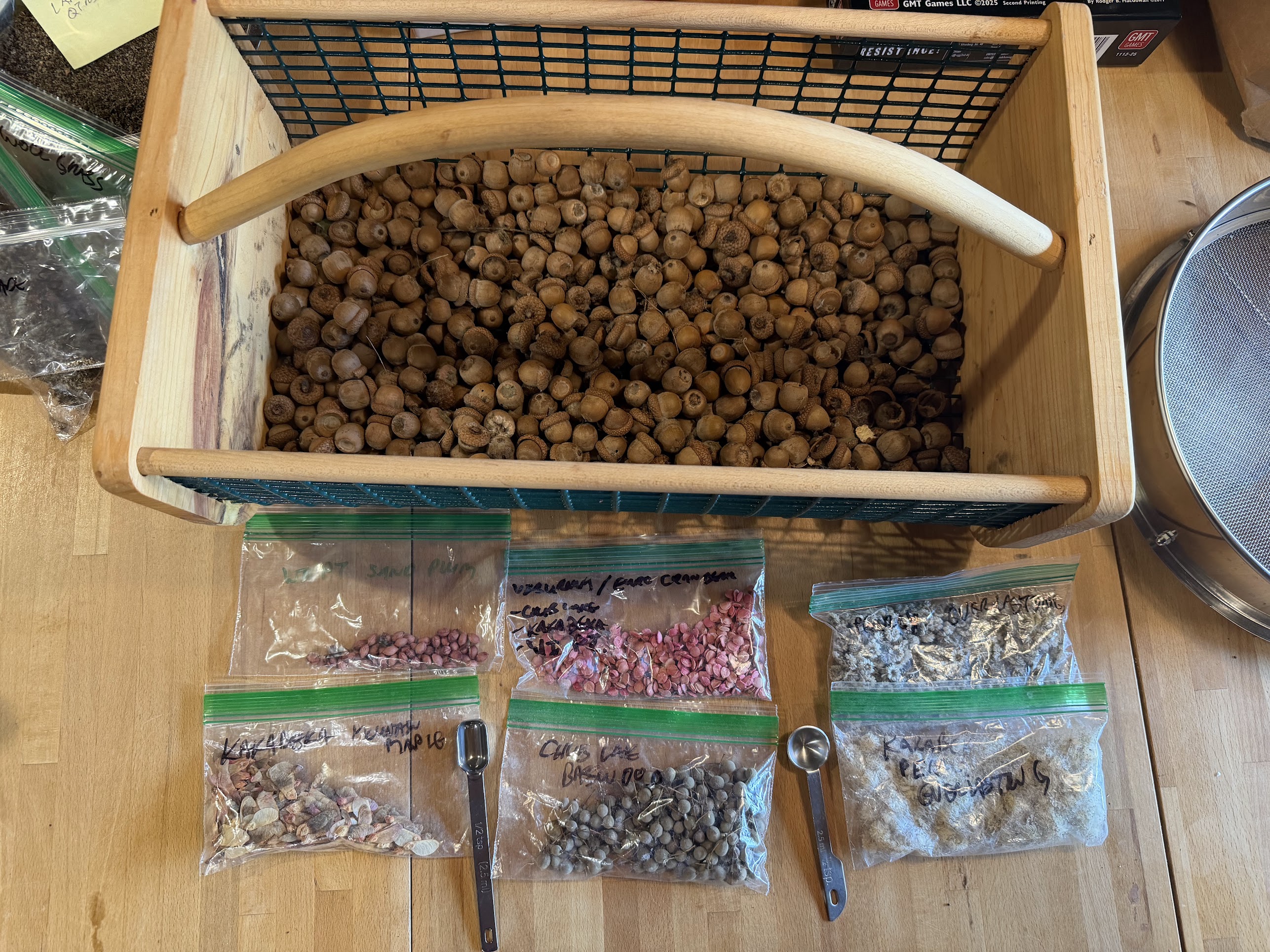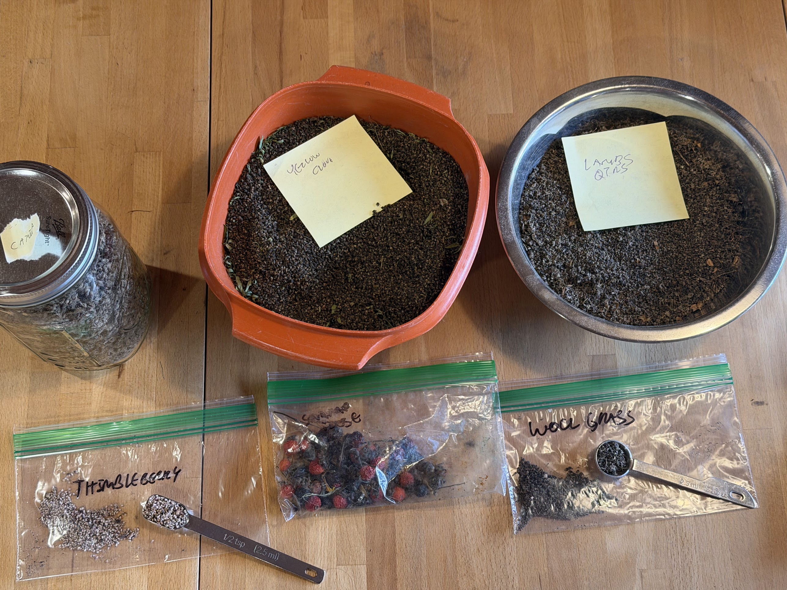 (The bag of pin cherry seeds is mislabeled sand plum, but that doesn't grow around here so I lined up the dates and figured out the mistake.)
