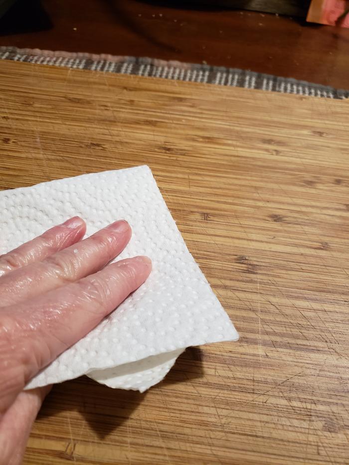 I then removed the excess with a piece of paper towel (That I popped in the fire after)