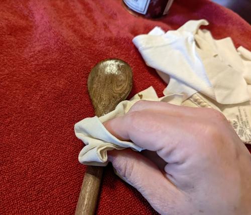 I used coconut oil because I don't usually keep walnut oil on hand and that seemed like the next best option based on what other posters did. The hardest part was getting into those little slots and details on the spoons. I had to pull the rag in between and move it almost like tooth floss.