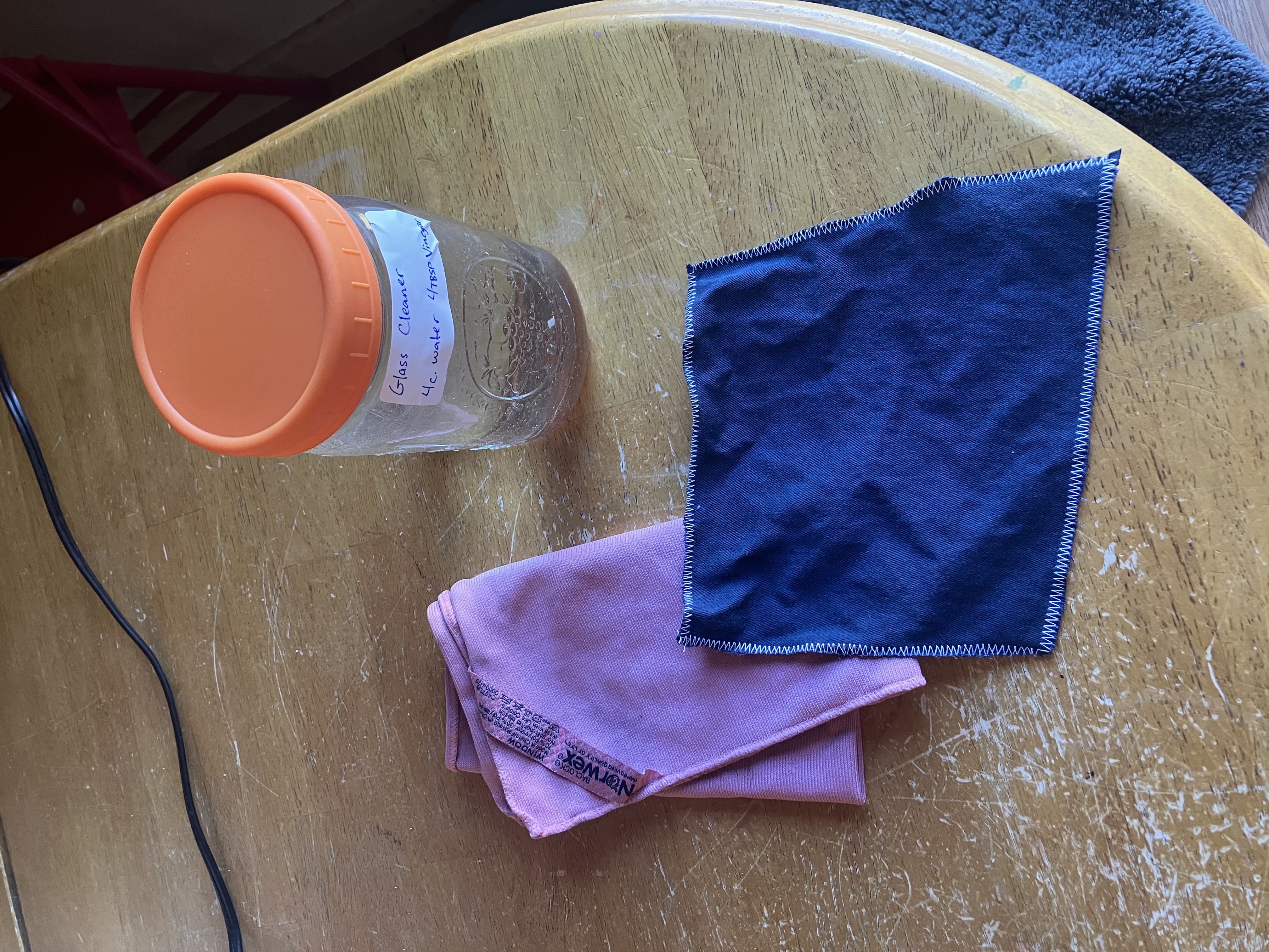 The cleaner I used was a water/vinegar mix. And I used a rag to get wet, a dry rag and a norwex polishing rag. (My favorite norwex rag of all time!)