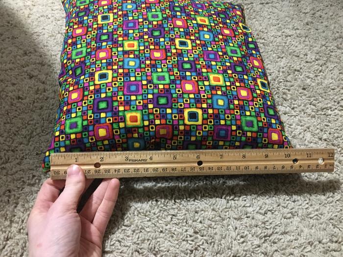 Note: It will be good to show a photo with measuring tape when possible, but since it was quilted and each square was two inches, it was pretty easy to figure out. Cute pillow, good job!