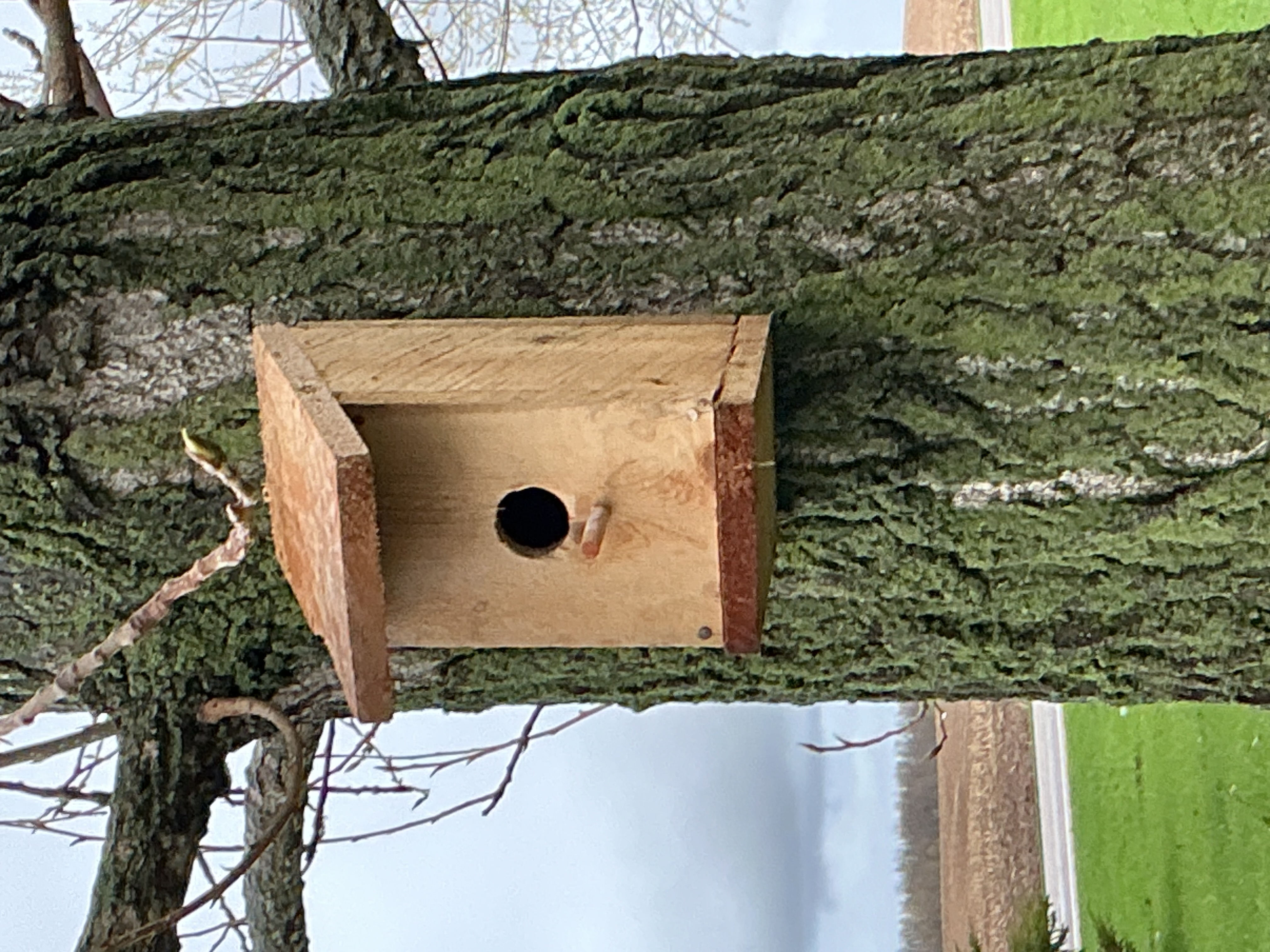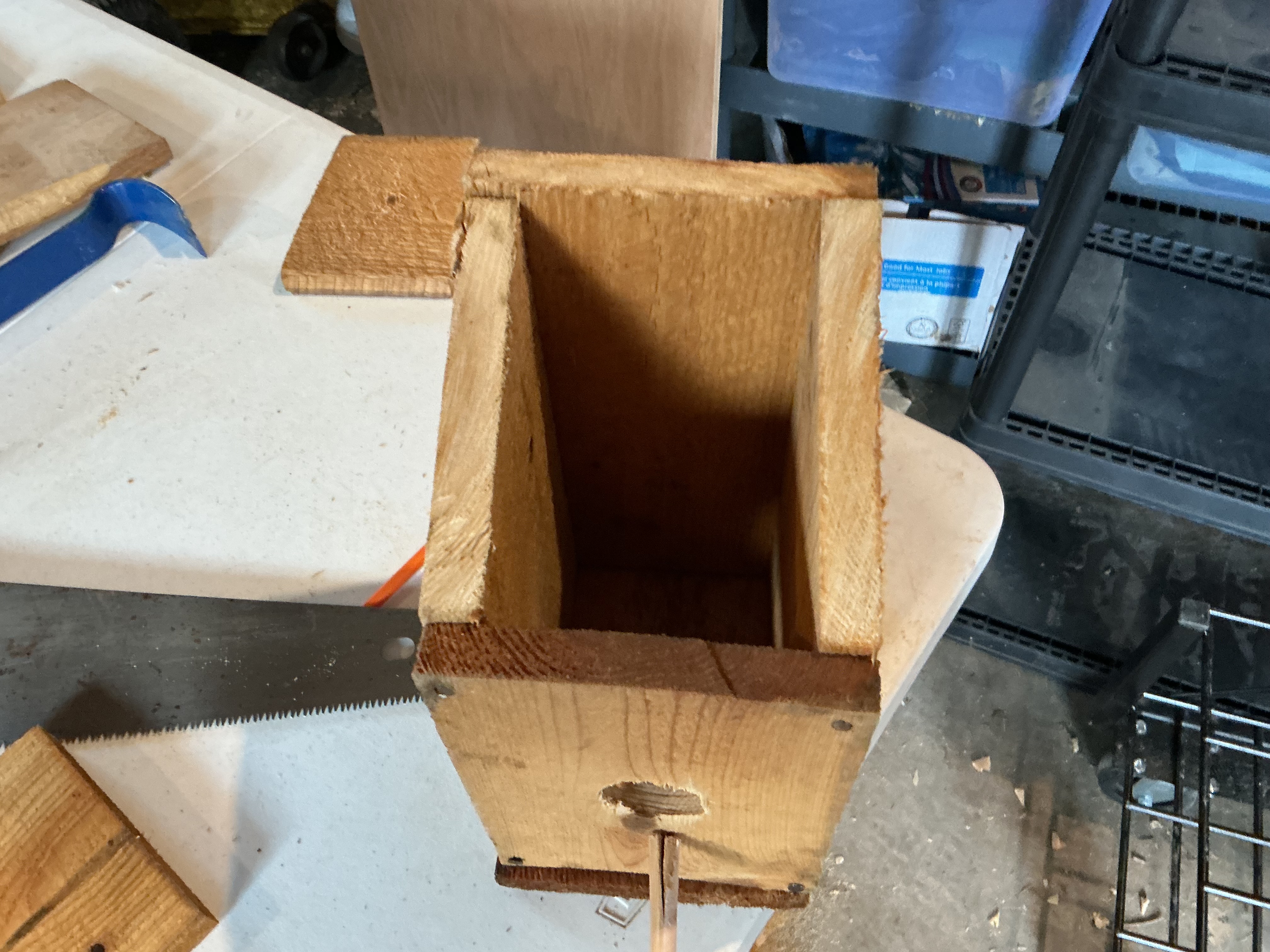 I made the bird house from scrap wood and old nails that I recycled from pallets. I hope the birds like it