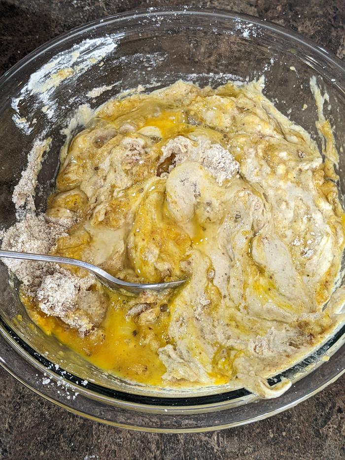 When you are needing a really fast pizza crust, we have found that just using sourdough discard works wonderfully. I just used a quart of refrigerated discard that I had set back and mixed a handful of seasonings in there.