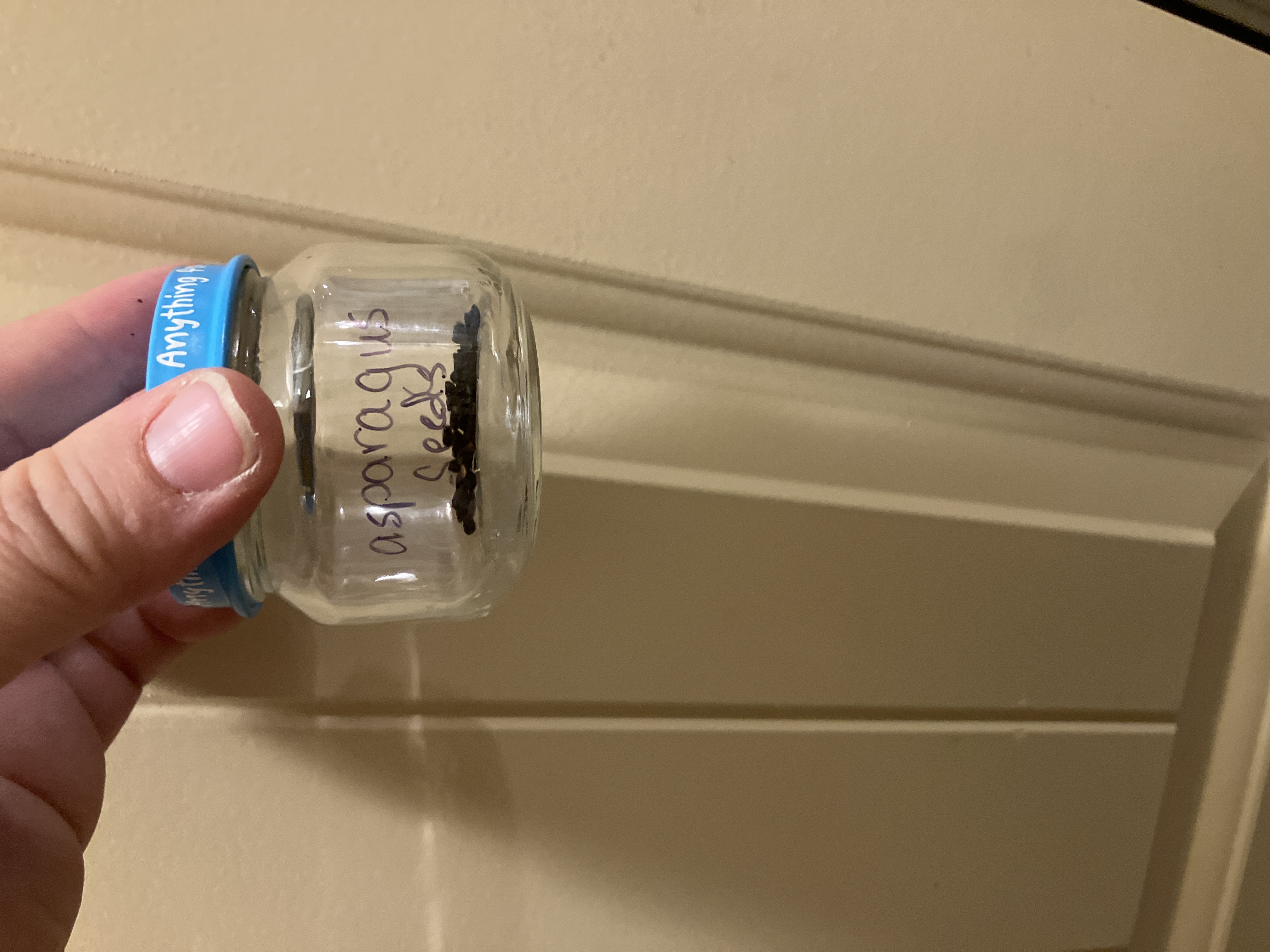 The last seeds I stored were so exciting to me! I hope I get a chance to forage for more of them. I found wild asparagus along the canal bank with these little red ‘berries’ on them. When I broke them open I found that each one had between 3 and 5 seeds each inside. I rinsed them and dried them overnight before adding them to a baby food jar. I can’t wait to have a nice big asparagus patch!