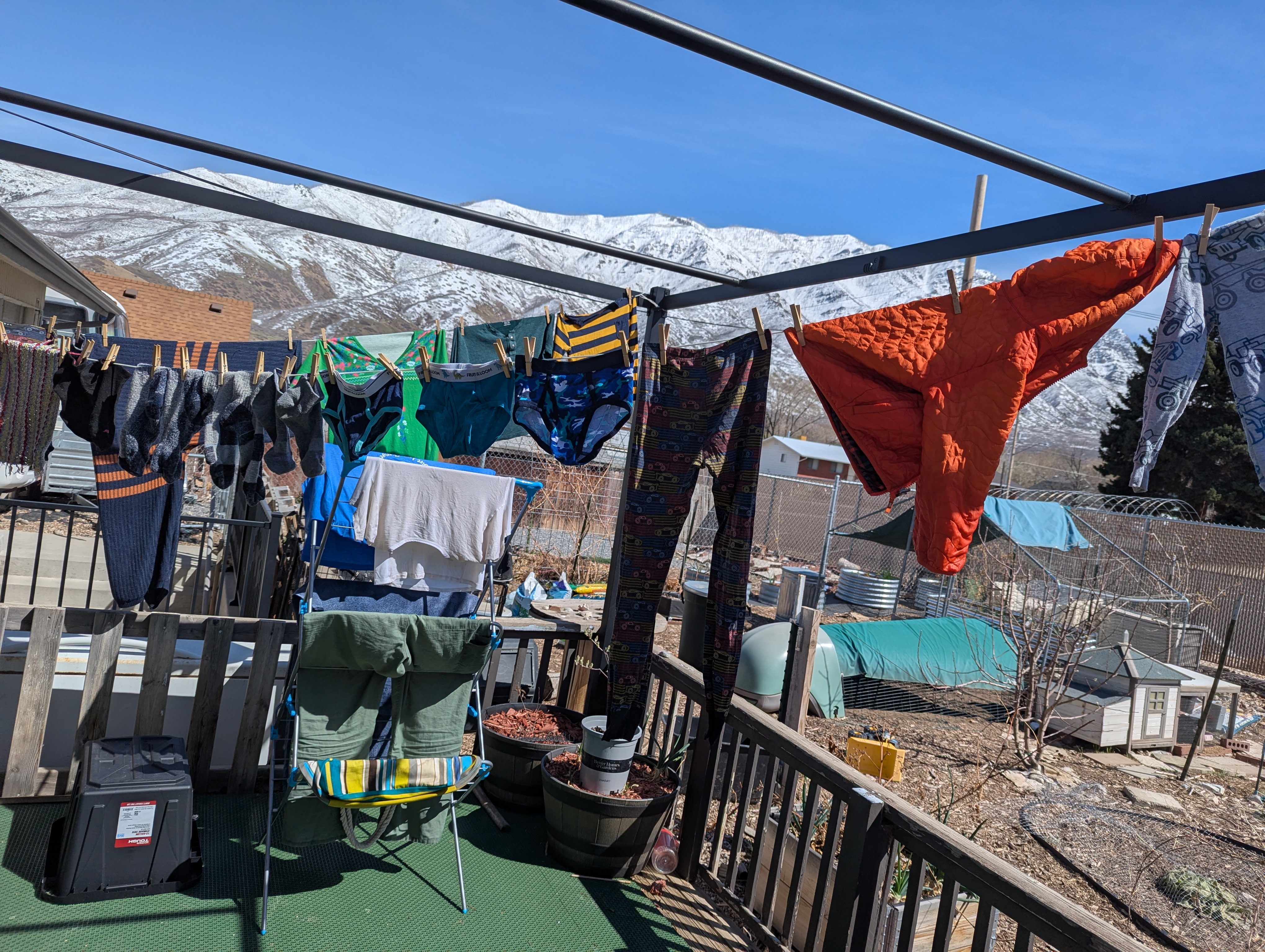 Here's all the laundry hanging up on my three lines.