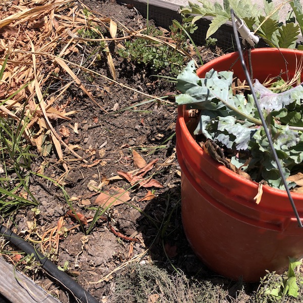 So for this BB I used a roughly 1.25 gallon container as my compost bin. I had to do 12 repetitions of this BB in order to make the 10 gallon quota. The reason I did 12 is because the first two fill ups I had were only about .75 gallons full and I wanted to make sure I got this bb covered. I had two mint plants that I used as the two spots to compost and cover. I apologize in advance for the massive amount of pictures. In an effort to avoid a colossal amount of pics, I will be adding only a few to show the two spots where everything was dumped and covered. I have more photos of stuff covered/ uncovered that I can add if needed.