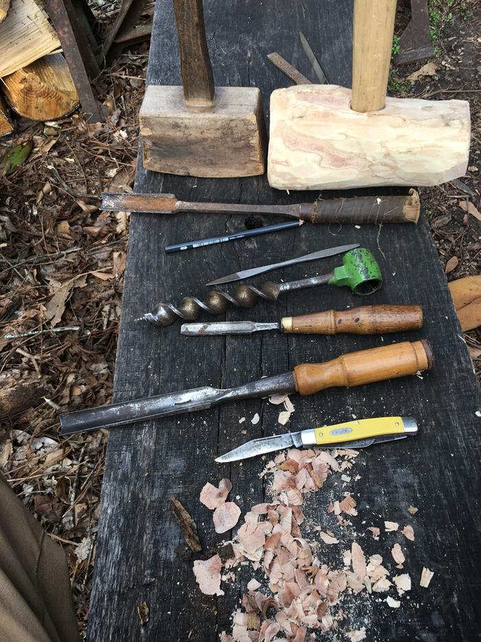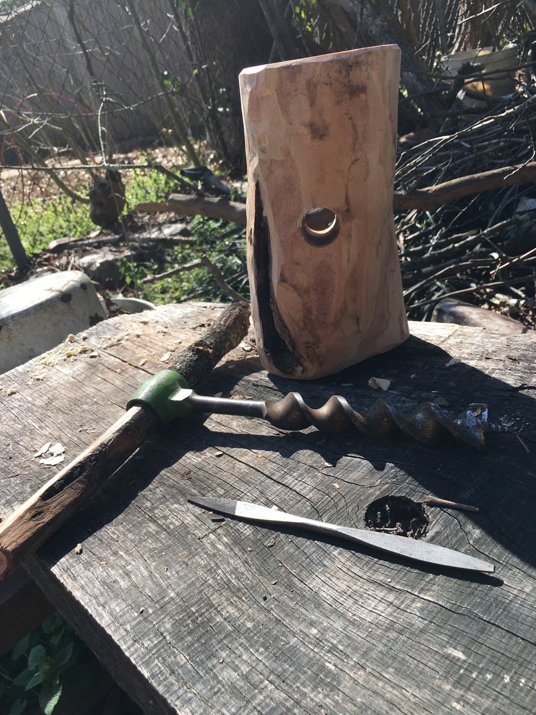 The beginning of my mallet head, first handle, and the auger.