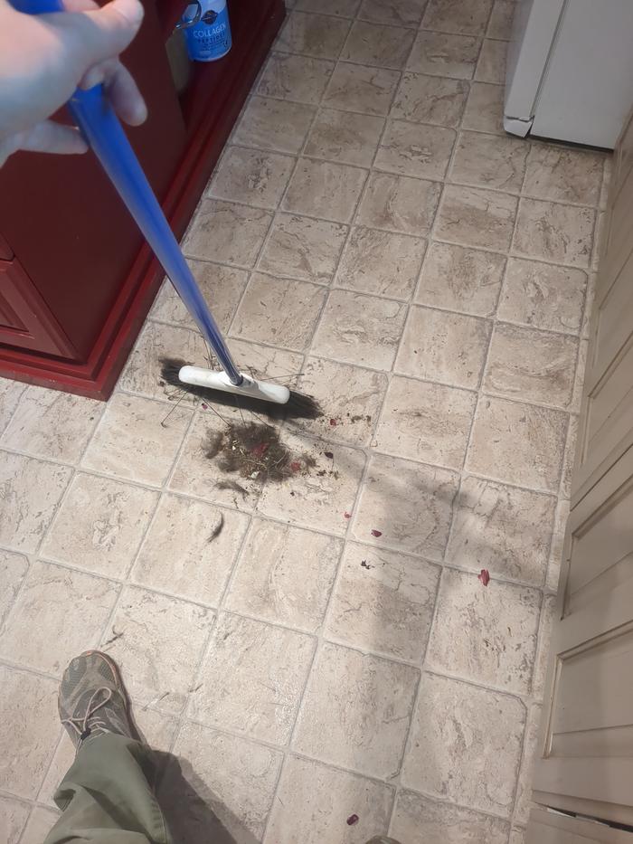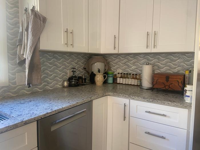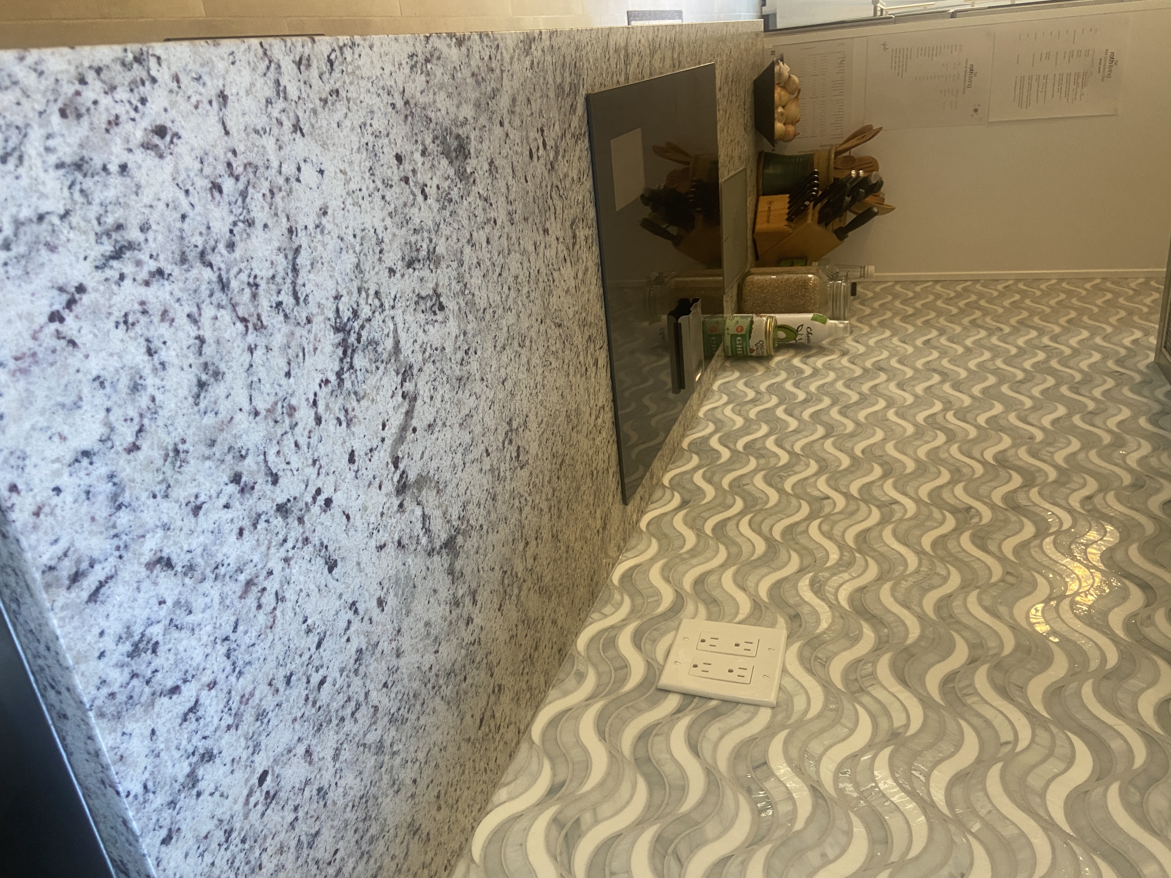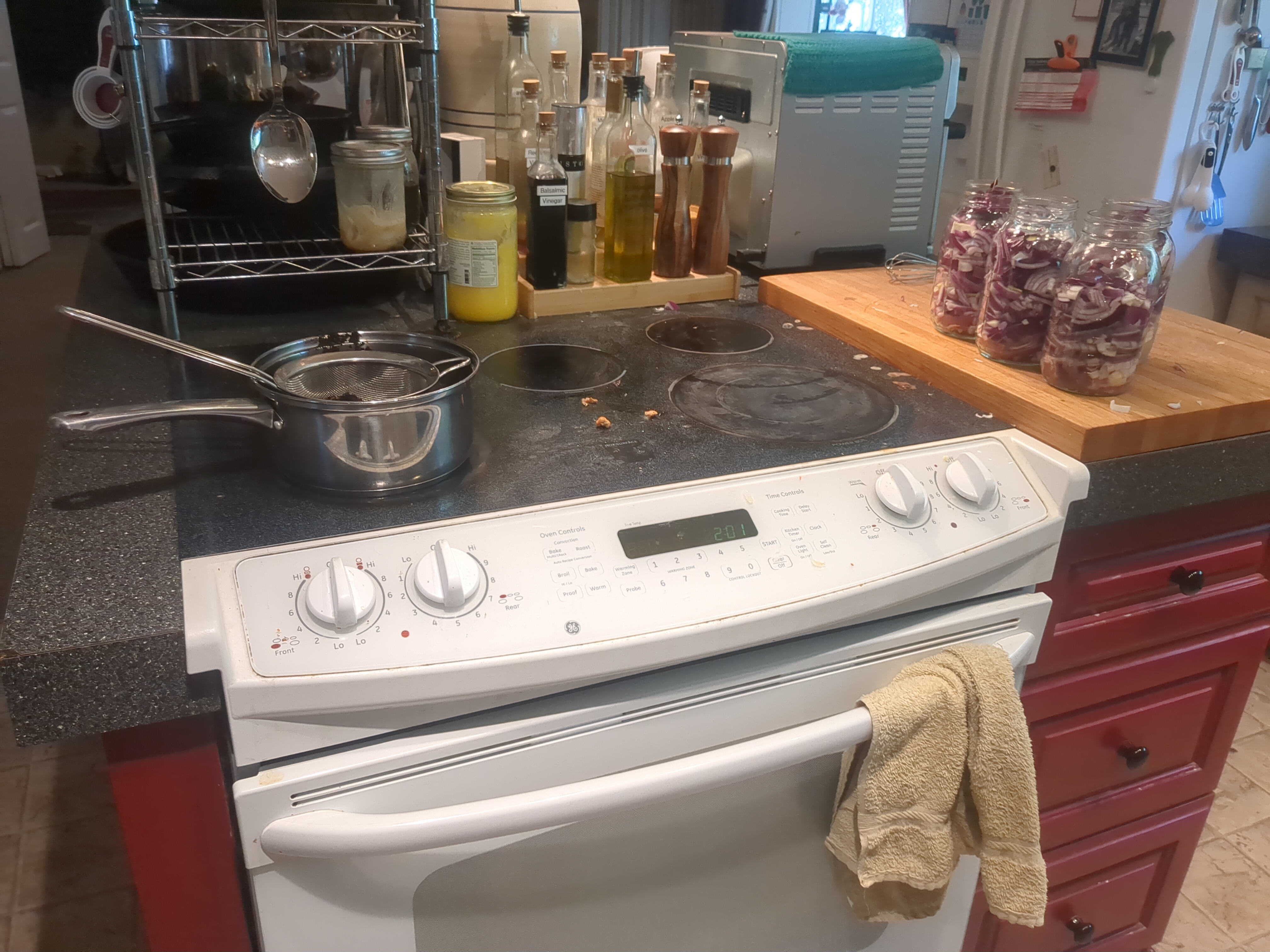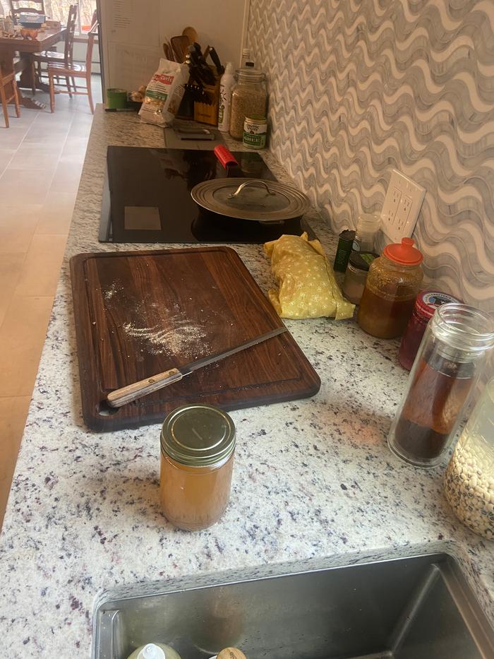 - post an after picture of: sink, counters, table, stovetop, and floor