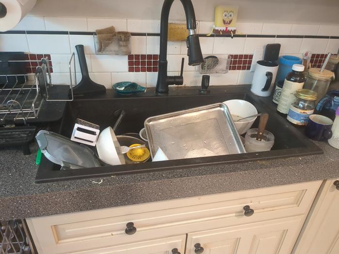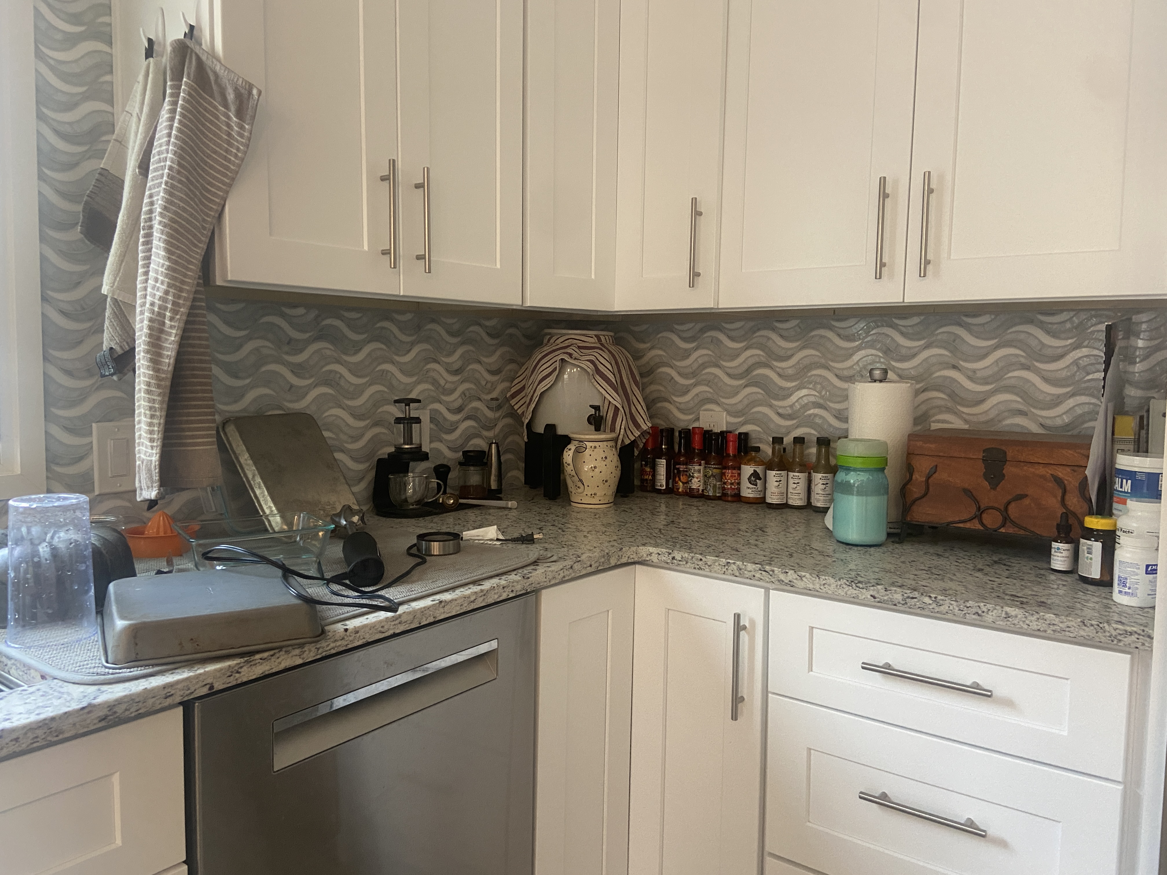- post a before picture of: sink, counters, table, stovetop, and floor