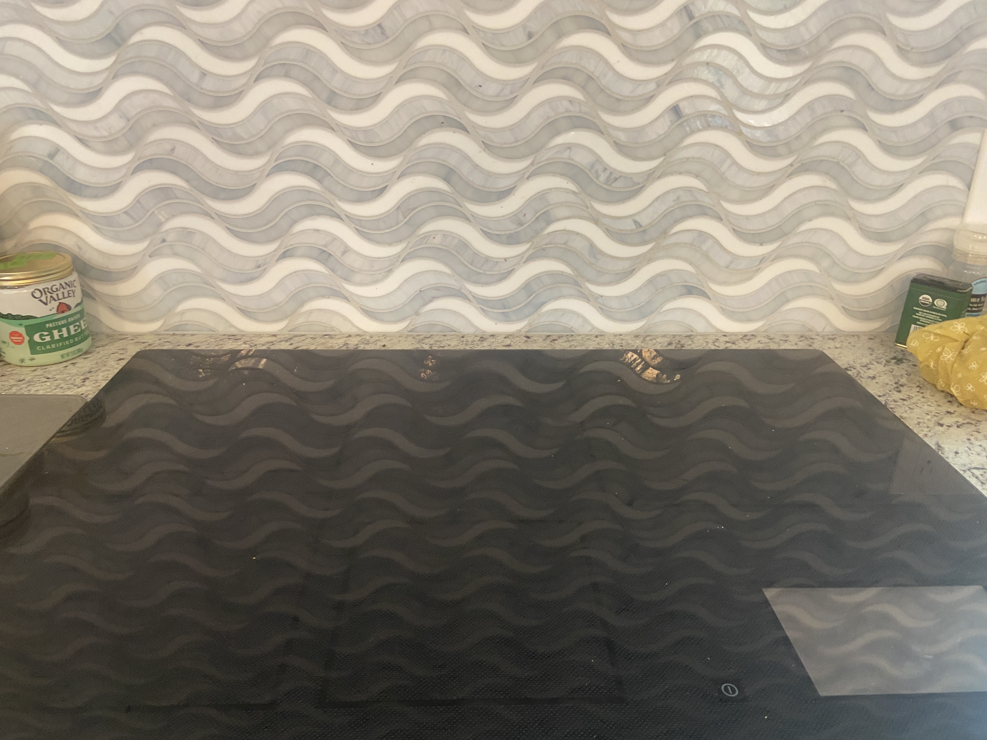 I used warm water for everything except for the stove, which I used baking soda and water. The stuff remaining on the stove are scratches or something that are there for good.