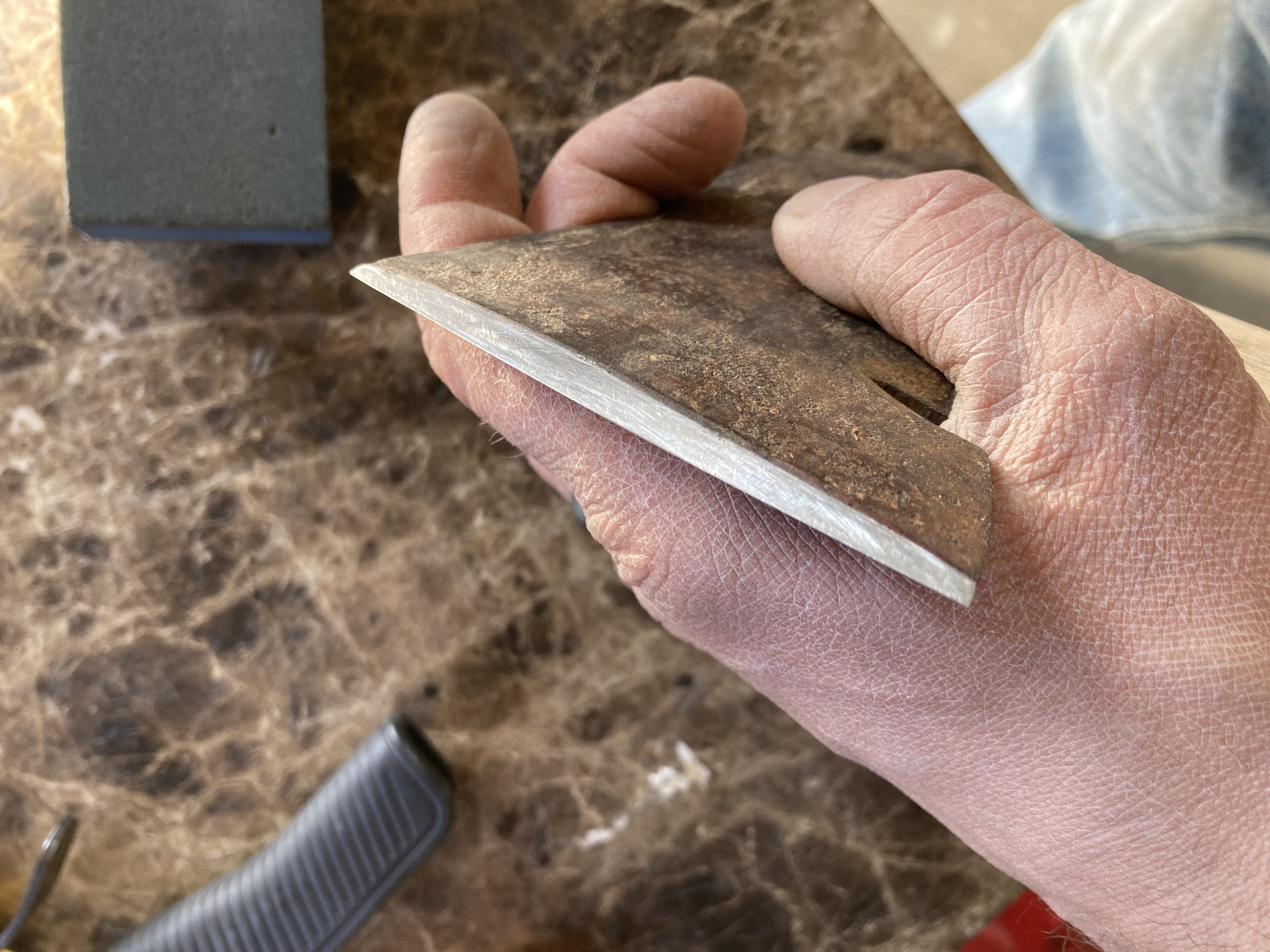 Started with a hatchet I haven't used in a while and was quite dull. There were a few knicks at the beginning. Using a 400 grit wet stone, I sharpened a dull hatchet.