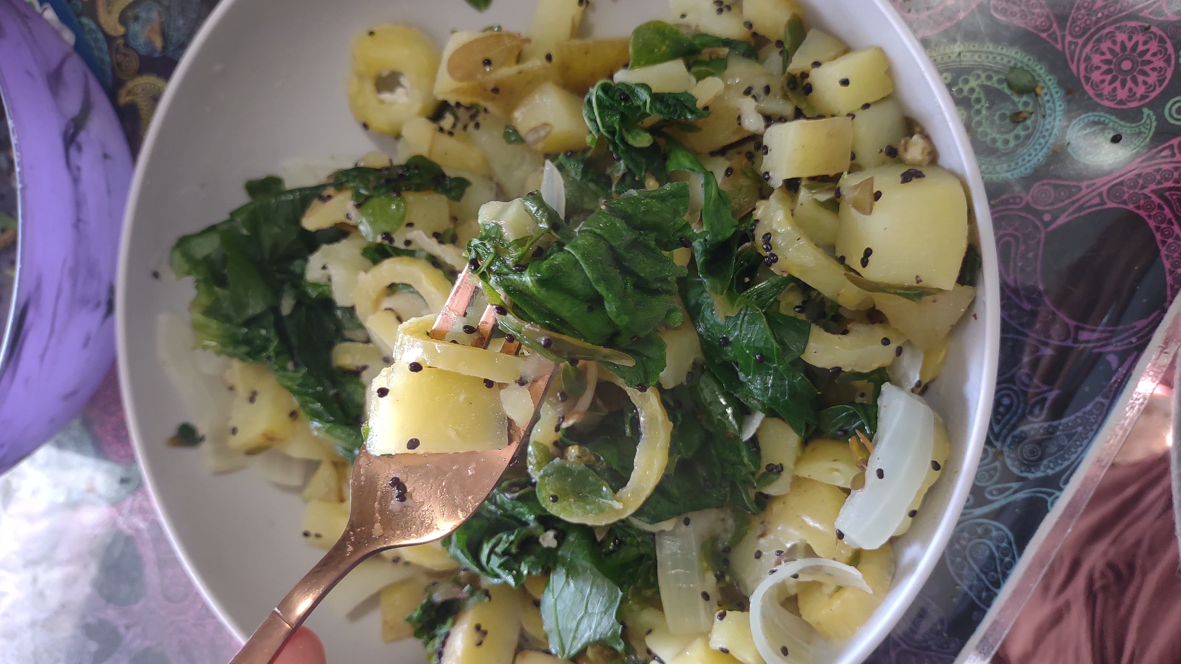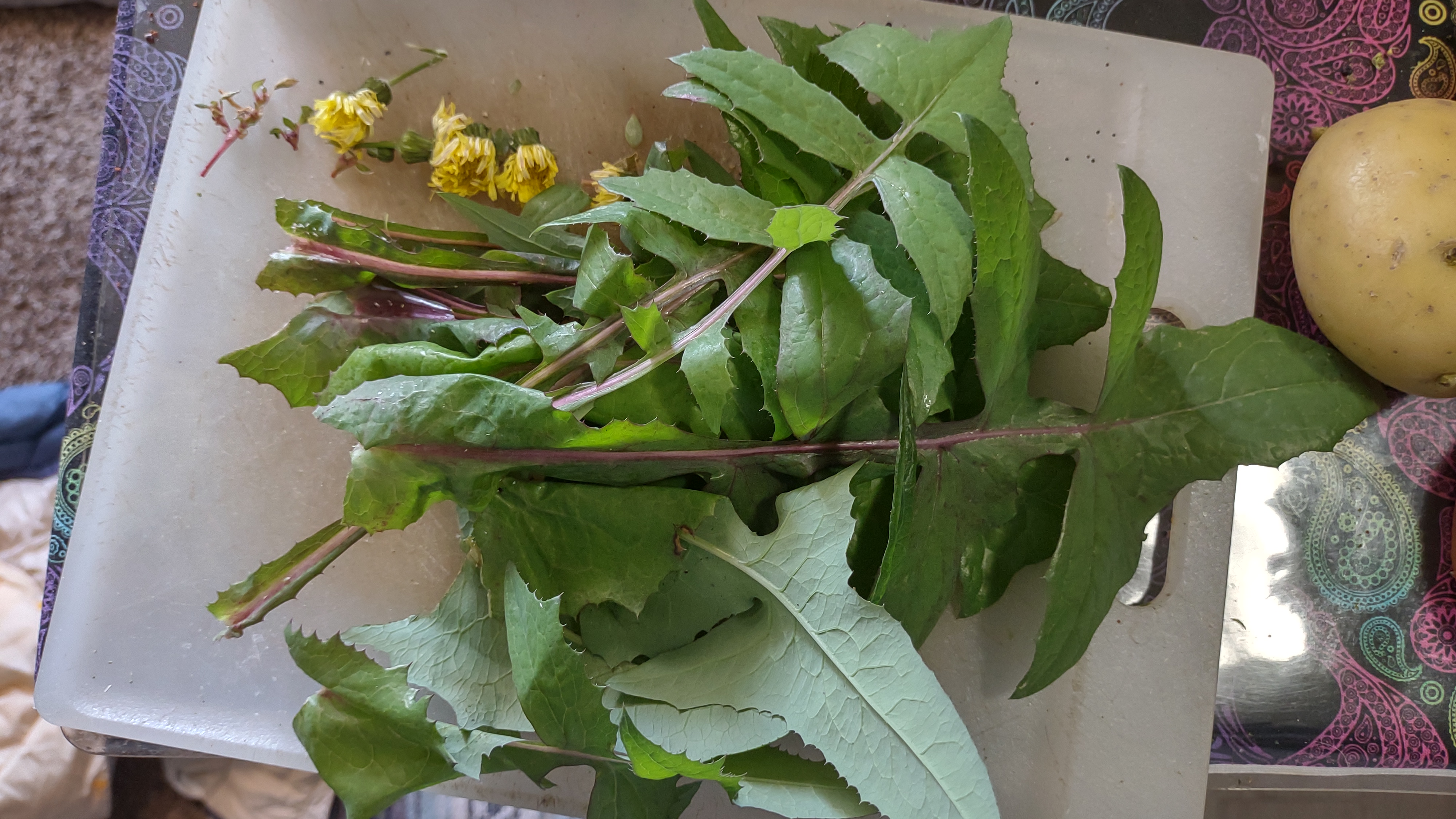 The dish: I added the foraged ingredients to some steamed potatoes, onion and garlic; I seasoned the dish with some butter, salt, and pepper.