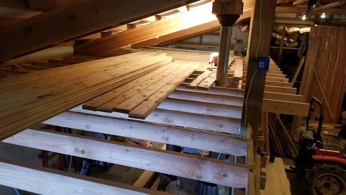 We had a solid full day in the shop pulling nails, screws, 2×4s, 1×4's, and insulation. The 2×4s were joists that we started replacing with 2×6s. Though we're losing 2" in vertical storage space for the mezzanine, the extra support will make all the difference.