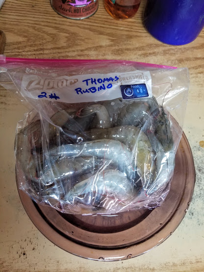 We just came home with 2# of beautiful fresh shrimp on ice.