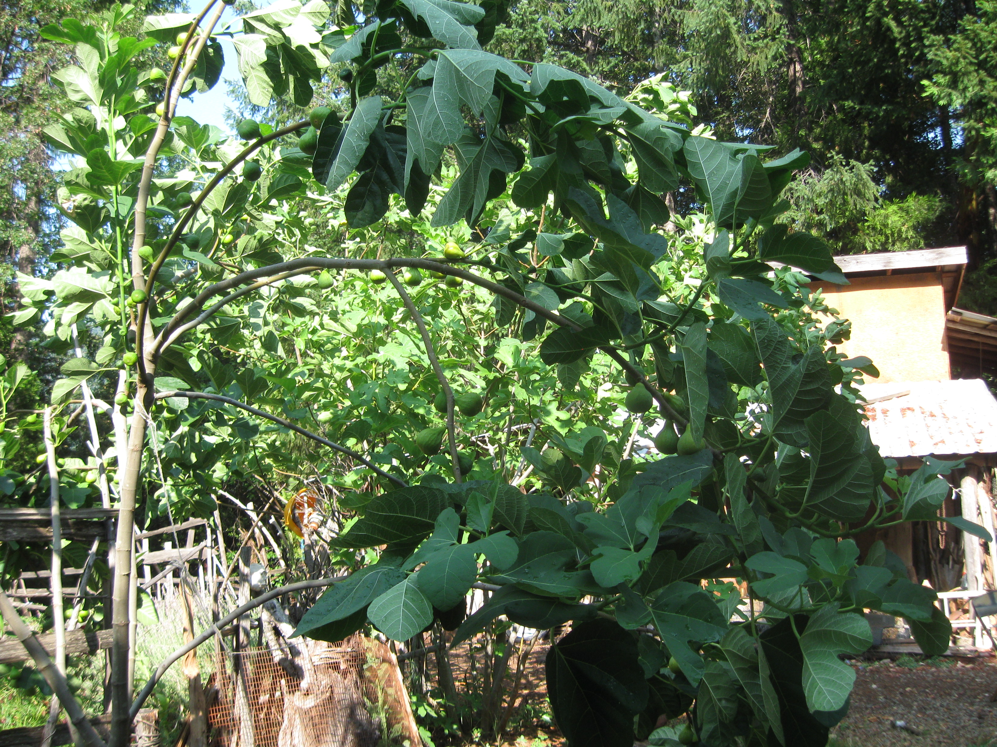 I wrote this post a few months ago, so let me update it. We already have many of these species: mulberry (very small yet), fig trees (producing), pomegrenate (no fruits yet), but also olive trees, almonds, and carob. The people who managed the garden before us planted a lot of fruit trees: oranges, lemons, bananas (though it dries off before fruiting), apricots, apples (all died), they are all too small or on the way to dieying, because we have really no water.