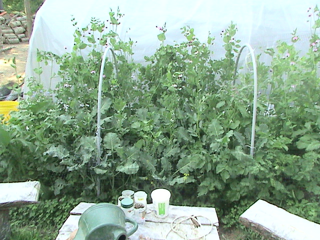 Soon will be spinach, kale and a fresh planting of edible pod peas.