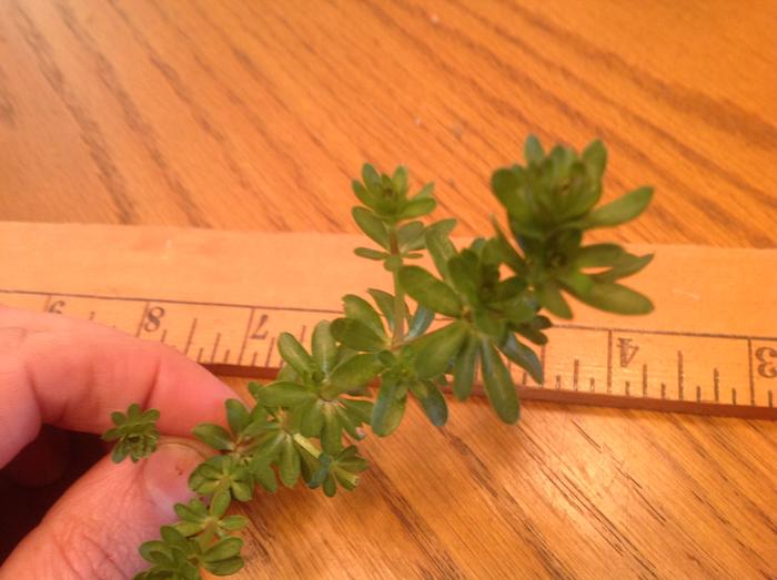 Ooh! Or it could be cleavers! I'd say try a tiny bit, and if it tastes really chlorophyll-y and green, it could be cleavers. If astringent and tart, purslane.