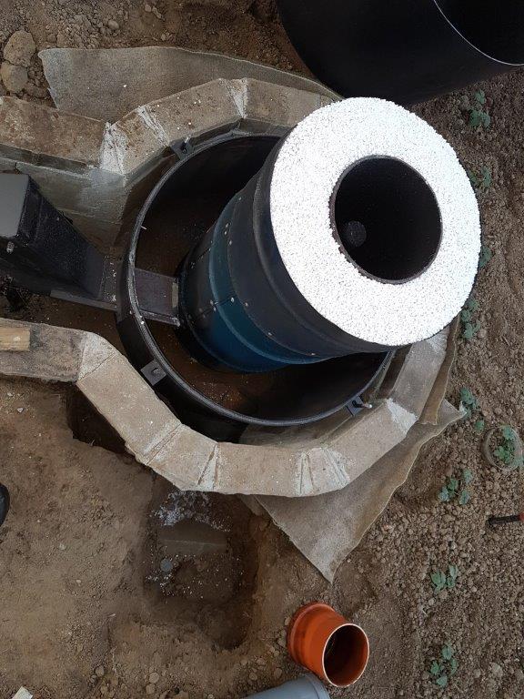 The color of the buried pipe I find a bit suspicious. To my eye, it is the same as the PVC pipe for sewers here in Western Europe. So, just to be sure, that pipe should be metal otherwise you can't expect heat transfer from the pipe to the surrounding soil. Let alone the risk of melting or burning of that pipe.