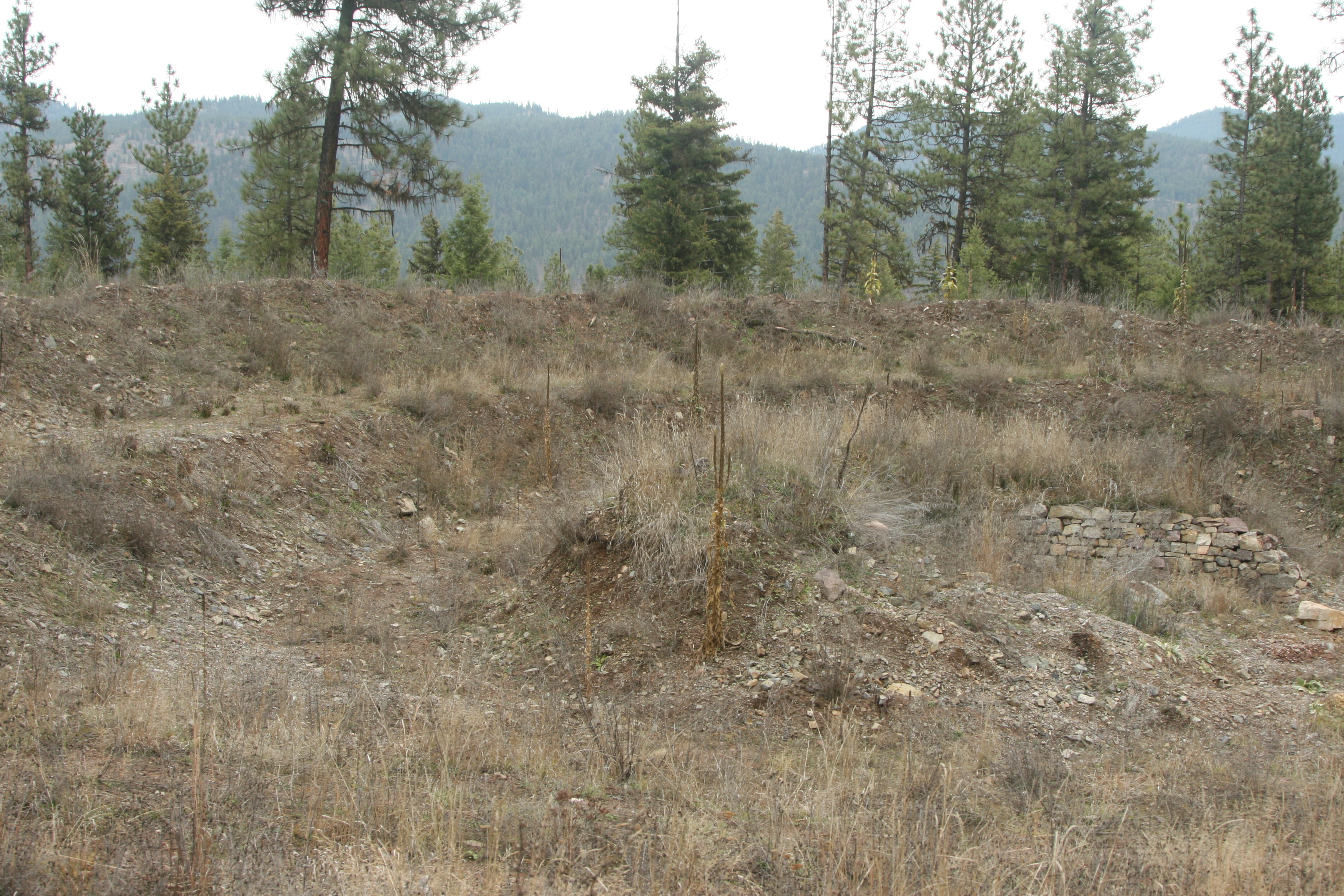 This is a picture of a sad little apple tree that was run over by somebody - it was broken and fred tried to repair it with a little masking tape. And the rhubarb was also pretty small and pathetic. And some alfalfa we planted eventually took off. This is on a berm that is pretty much just rock and sand. There is no hugelkultur element (woody bits - or any other organic matter) inside.