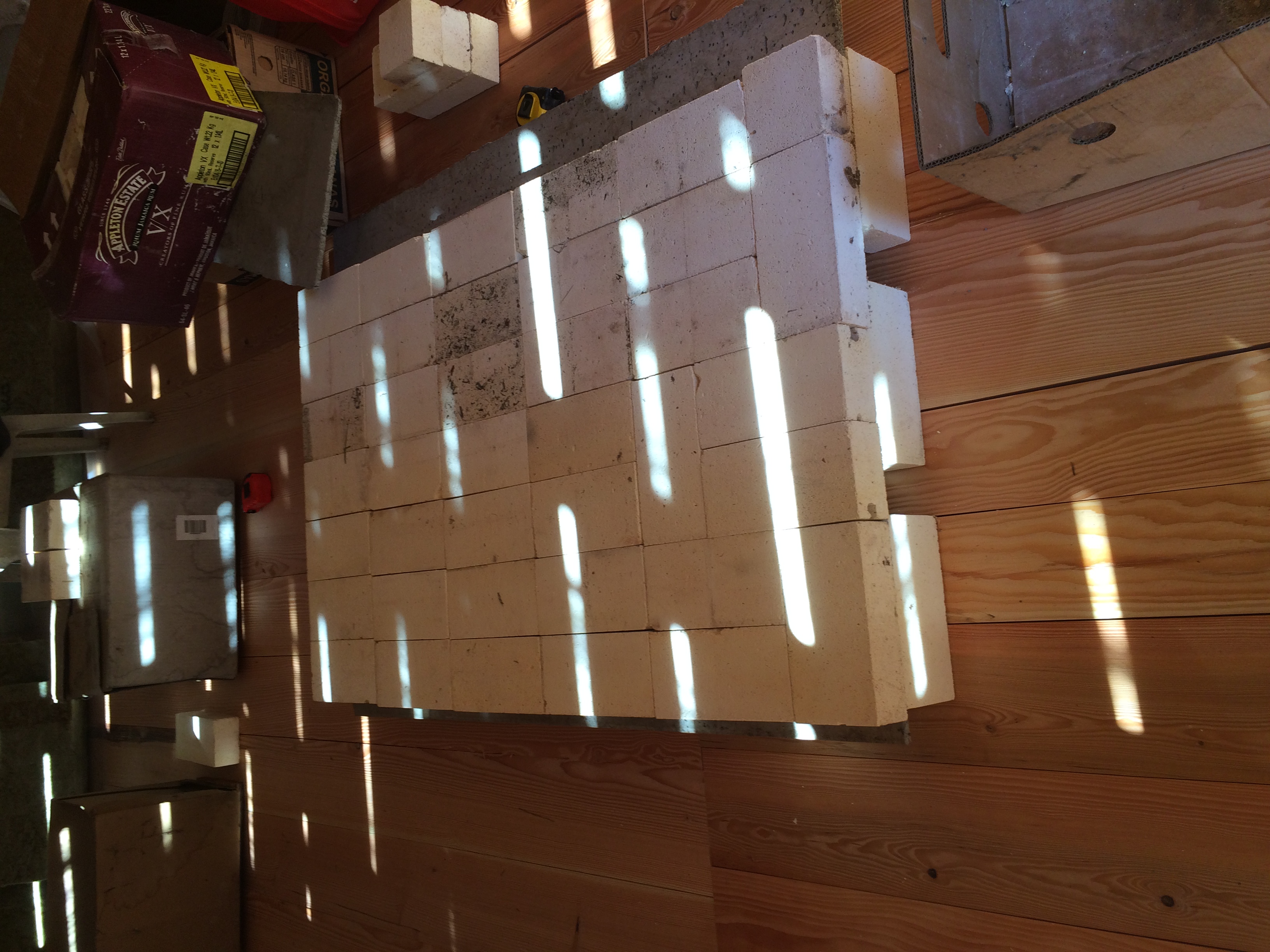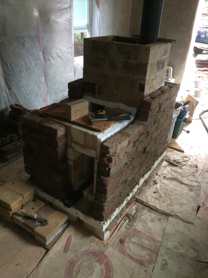 I have finally begun building my masonry heater. It is based off of matt walker's riserless core. The parts have been mostly scrounged or free. What i have spent money on is the white IFB bricks, secondary air tube, wood feed door, the superwool, and fire clay.
