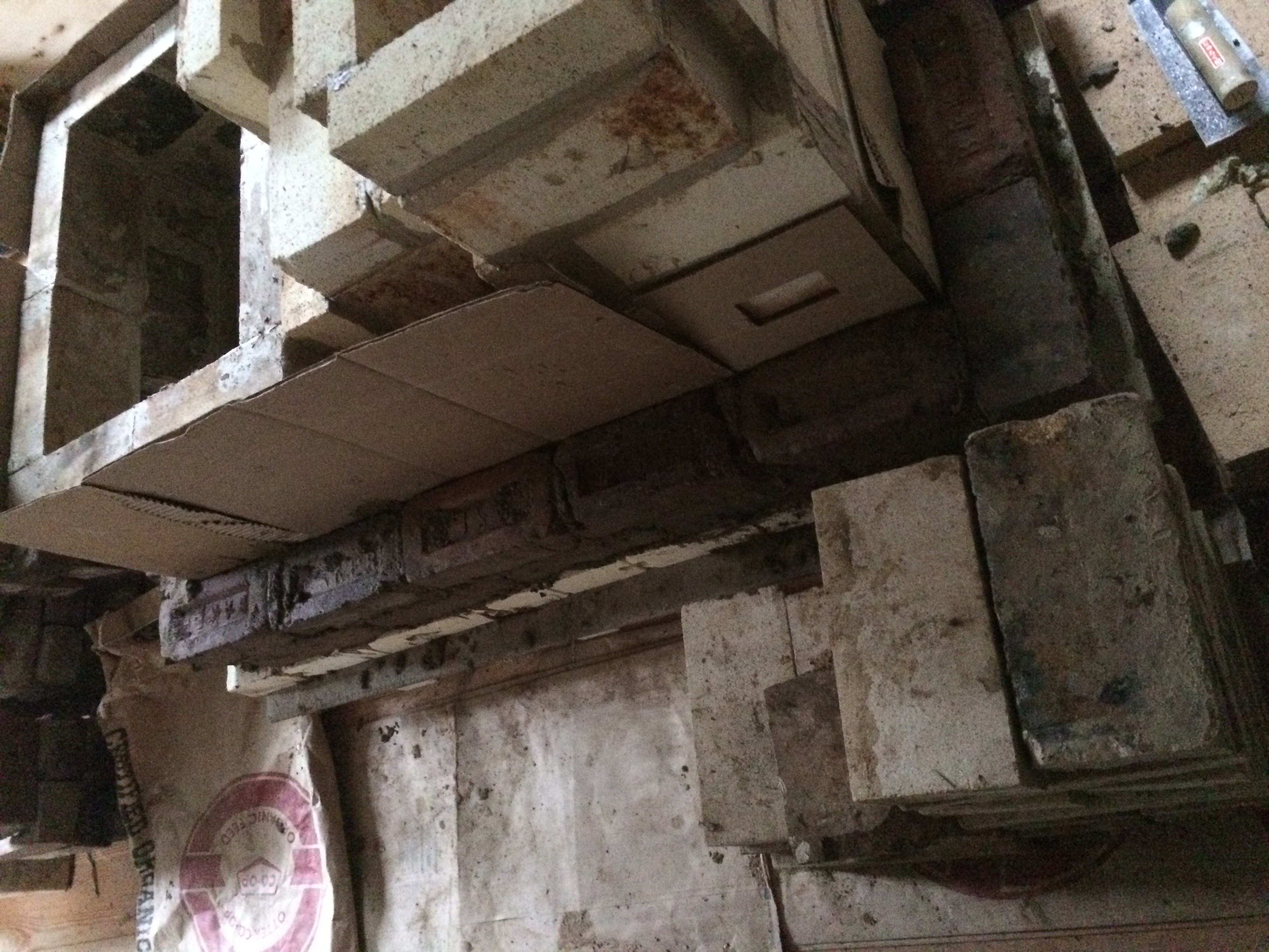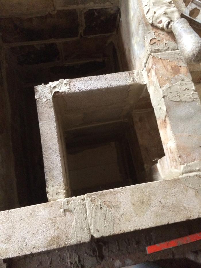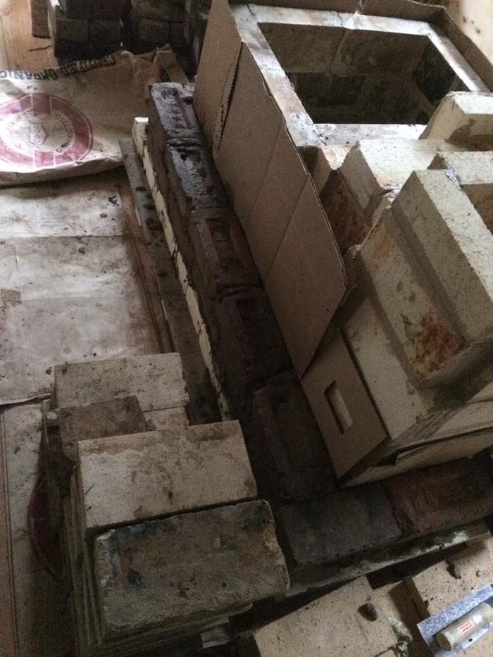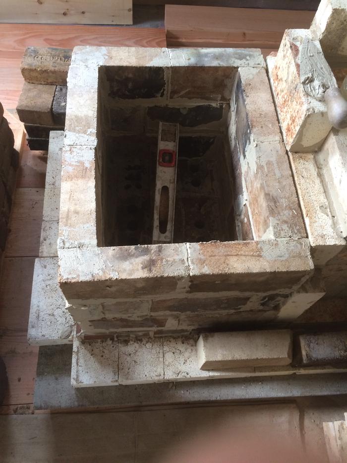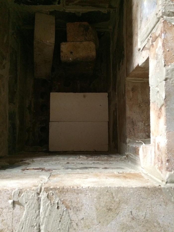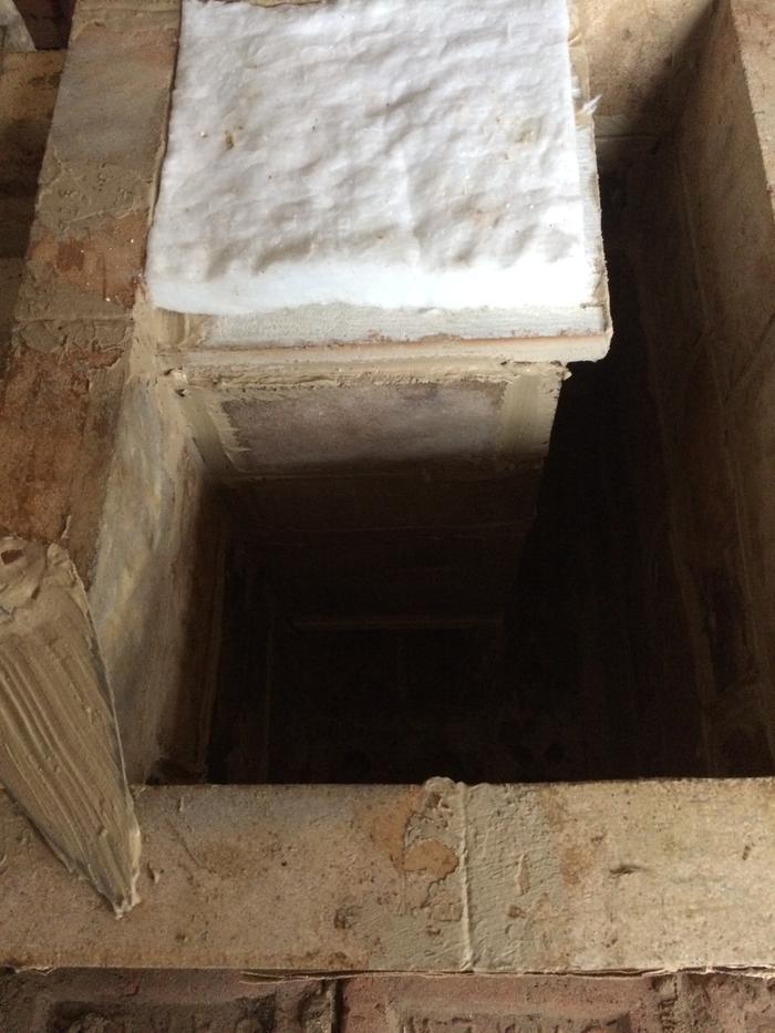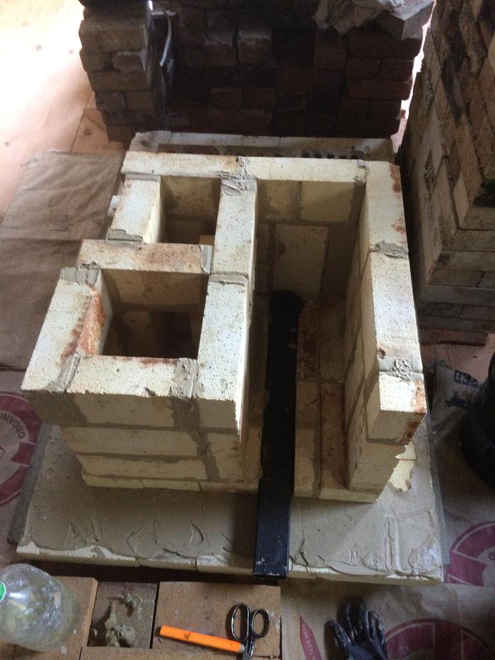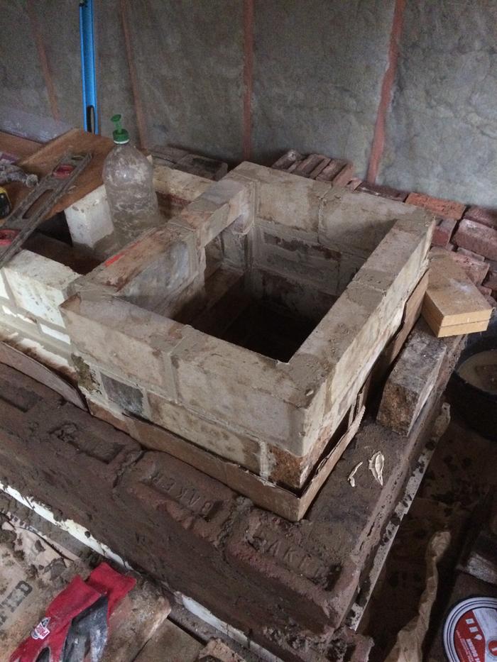 So i made a transition area which brings the flue gases down lower into the bell. It is about 7 3/4" by 8" and comes down to about 10" from the floor of the stove. It is topped with a ceramic fibre board along with a piece of superwool. The bricks i used were light weight ones which hopefully will not steal to much heat.