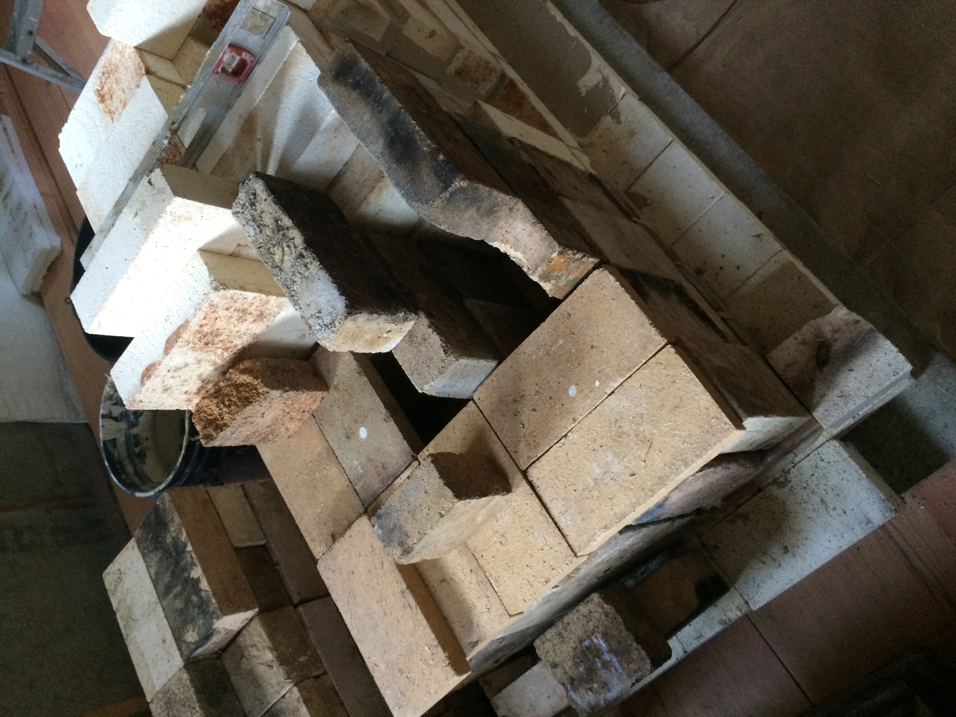 As far as putting the full sized fire bricks i found today that not making them wet at all and just using fireclay(clay slip) resulted in the best results.