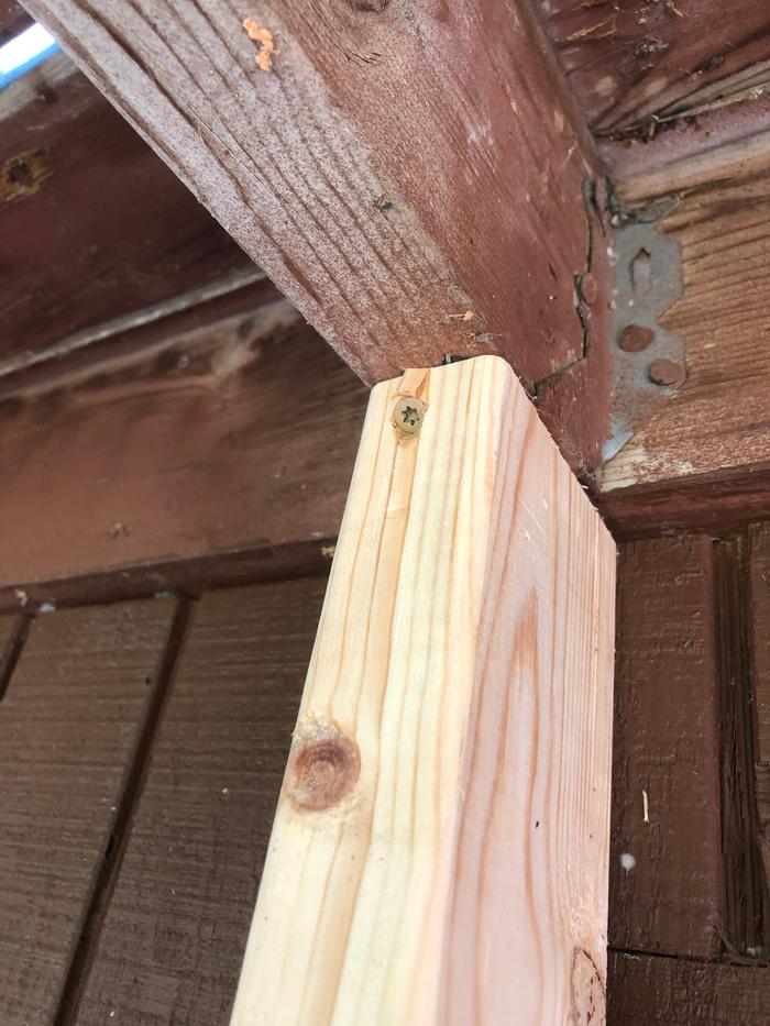 Note: Shoot, looks like you used plywood in the roof which is a no-no for "Dimensional Lumber Woodworking". Sorry. But the side supports look good...